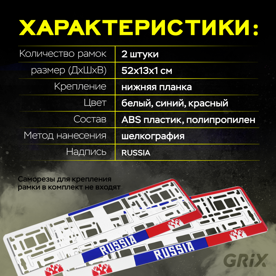 Grix Рамки автомобильные для госномеров "россия" 1 шт.