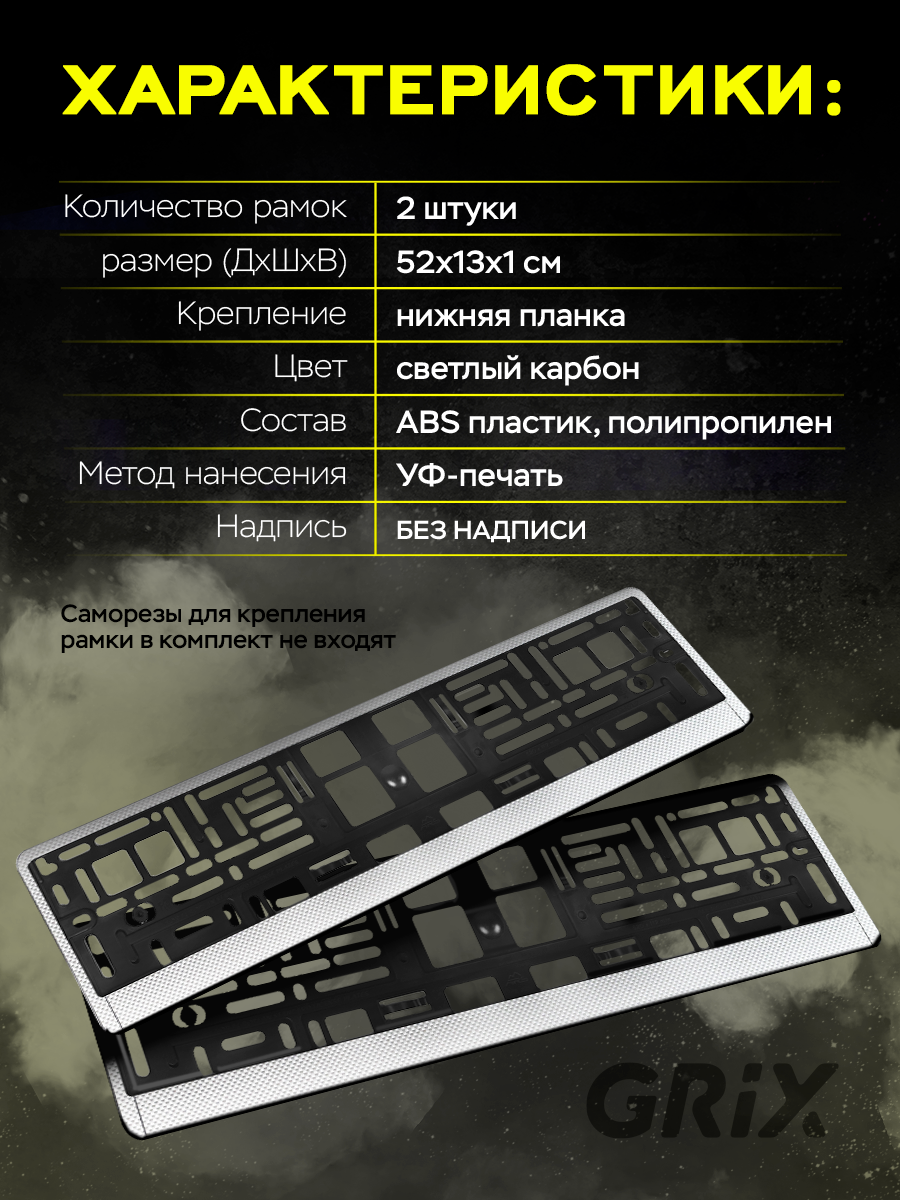 Купить Grix Рамки автомобильные для госномеров "карбон светлый" Набор - 2 шт.