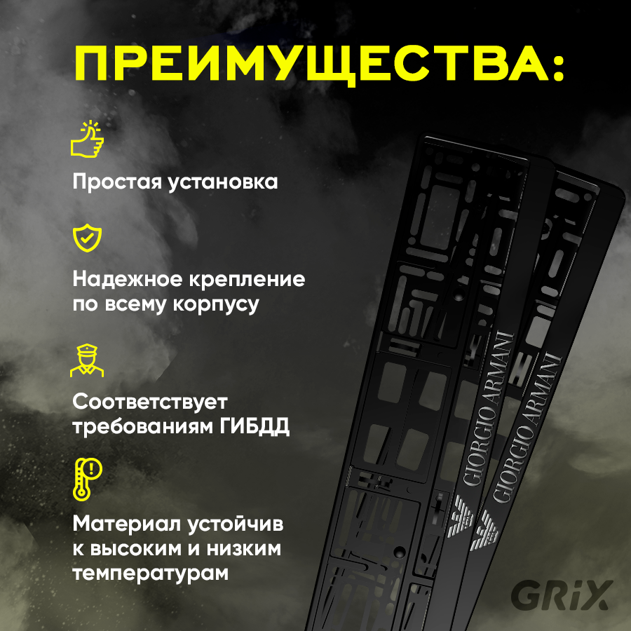 СохранитьGrix Рамки автомобильные для госномеров с надписью "GIORGIO ARMANI" 1 шт. интересное: