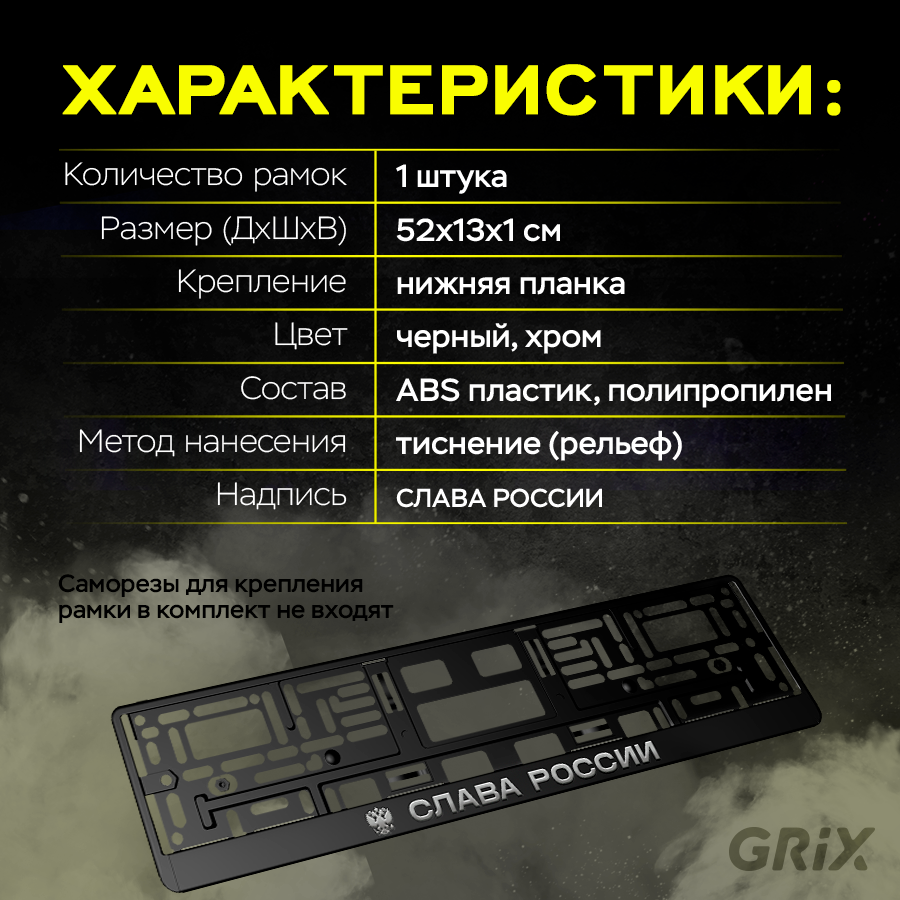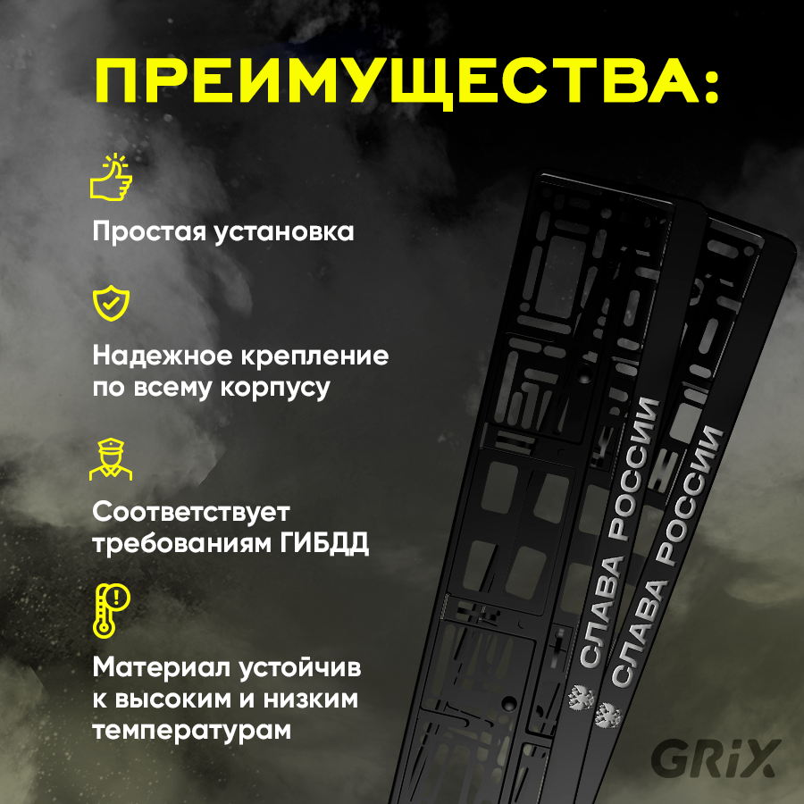 Купить Grix Рамки автомобильные для госномеров с надписью "слава россии" 1 шт.