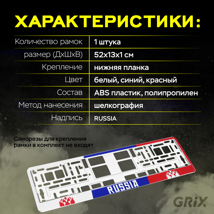 СохранитьGrix Рамки автомобильные для госномеров "RUSSIA триколор" 1 шт. интересное: