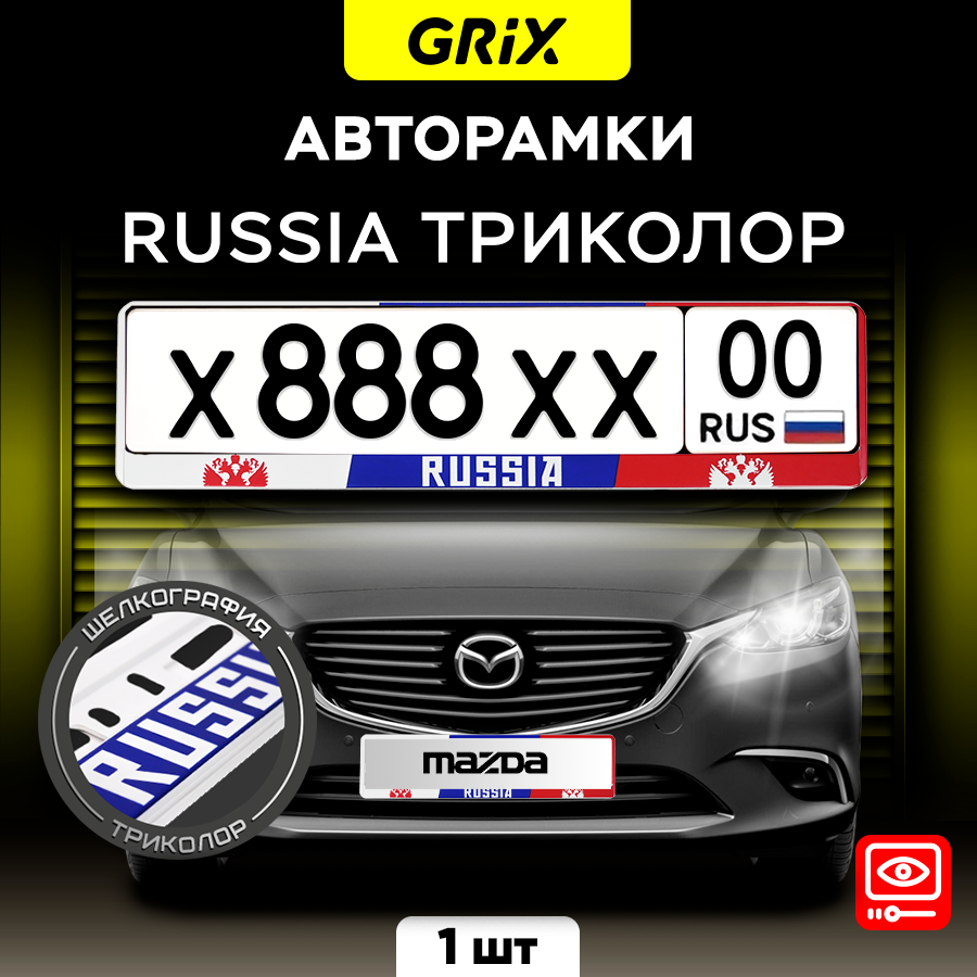 Купить Grix Рамки автомобильные для госномеров "RUSSIA триколор" 1 шт.