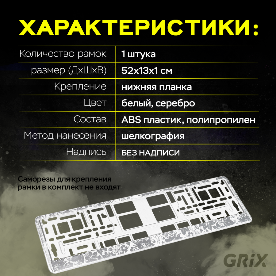 Купить Grix Рамки автомобильные для госномеров "серебристая хохлома (БЕЛАЯ)" 1 шт.
