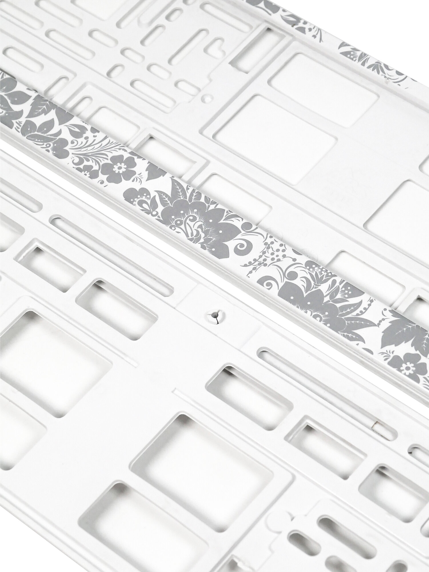 Grix Рамки автомобильные для госномеров "серебристая хохлома (БЕЛАЯ)" Набор - 2 шт.