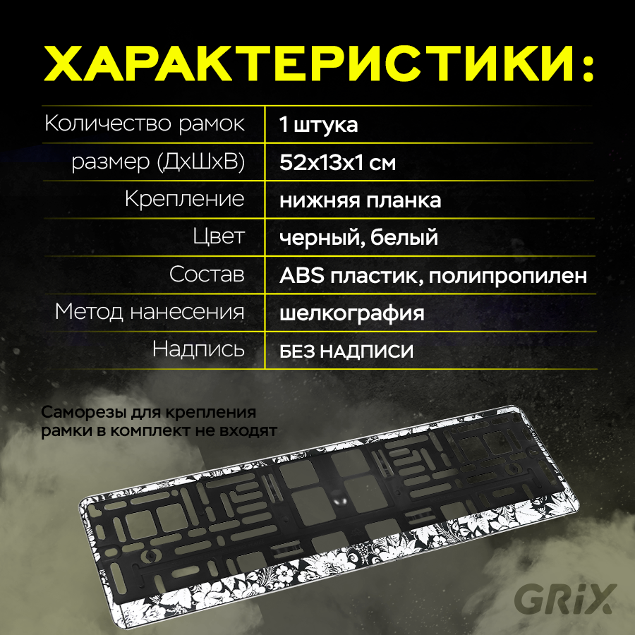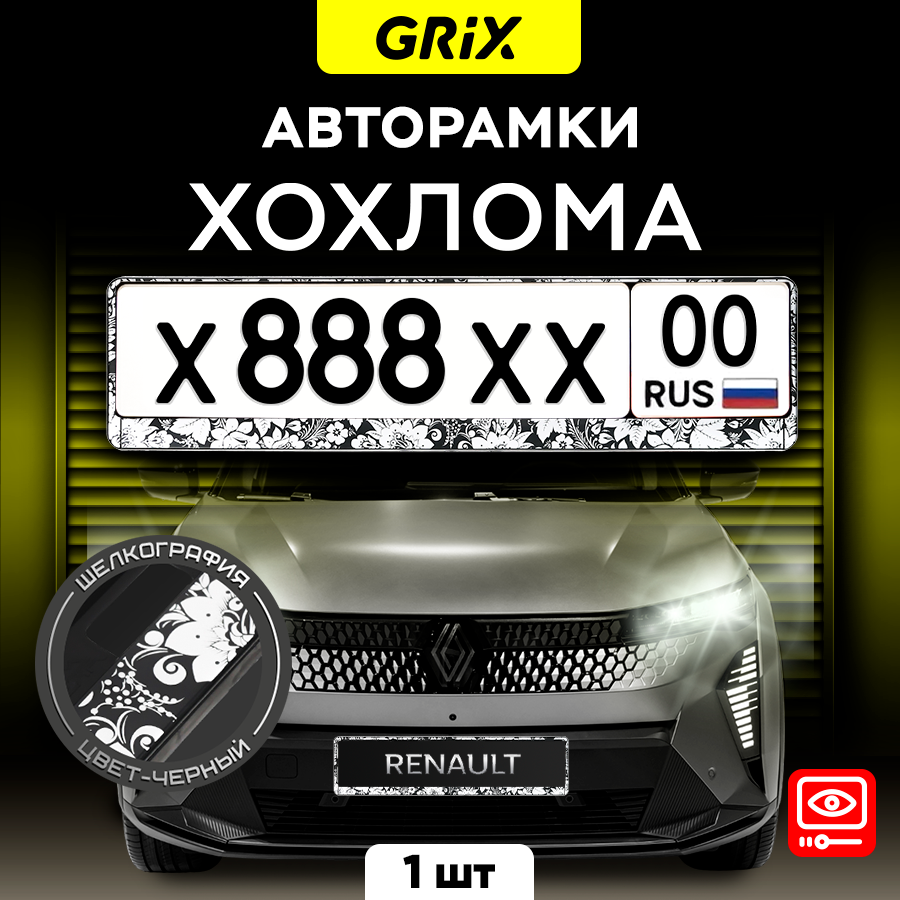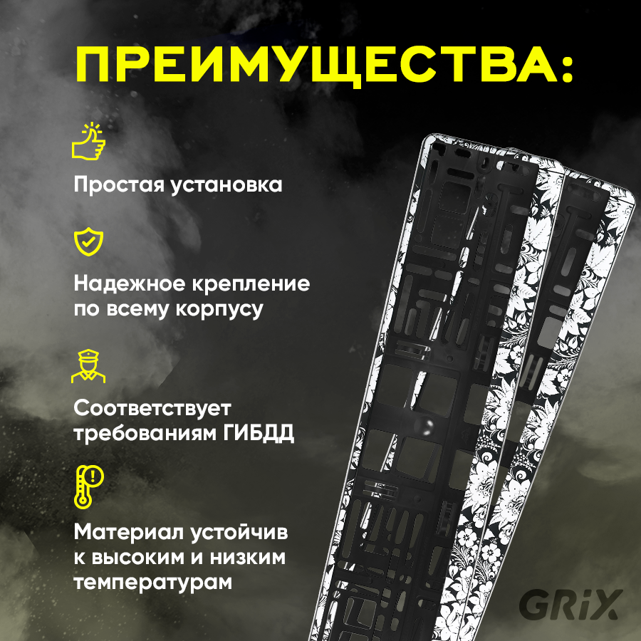 Купить Grix Рамки автомобильные для госномеров "серебристая хохлома (черная)" 1 шт.