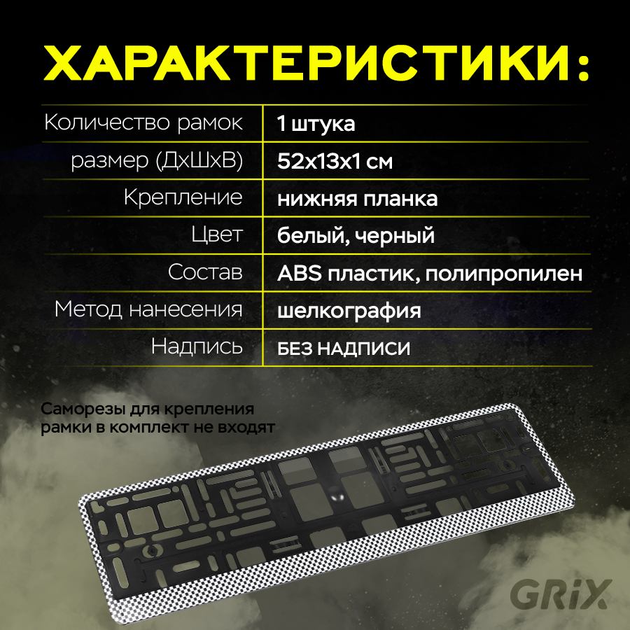 Grix Рамки автомобильные для госномеров "карбон темный" 1 шт.