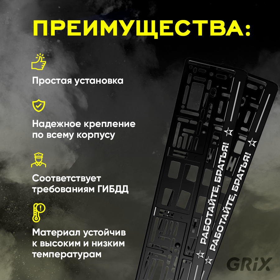 СохранитьGrix Рамки автомобильные для госномеров с надписью "работайте, братья!" 1 шт. интересное: