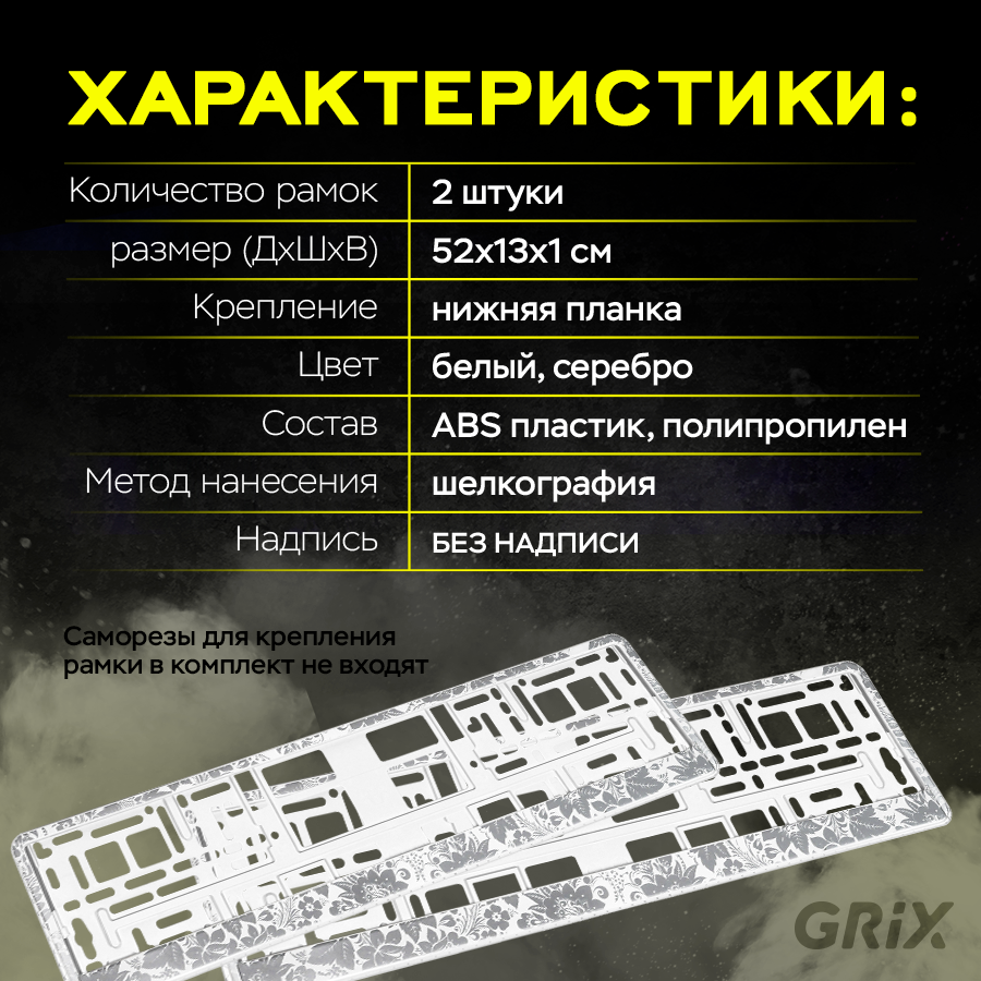 Купить Grix Рамки автомобильные для госномеров "серебристая хохлома (БЕЛАЯ)" Набор - 2 шт.