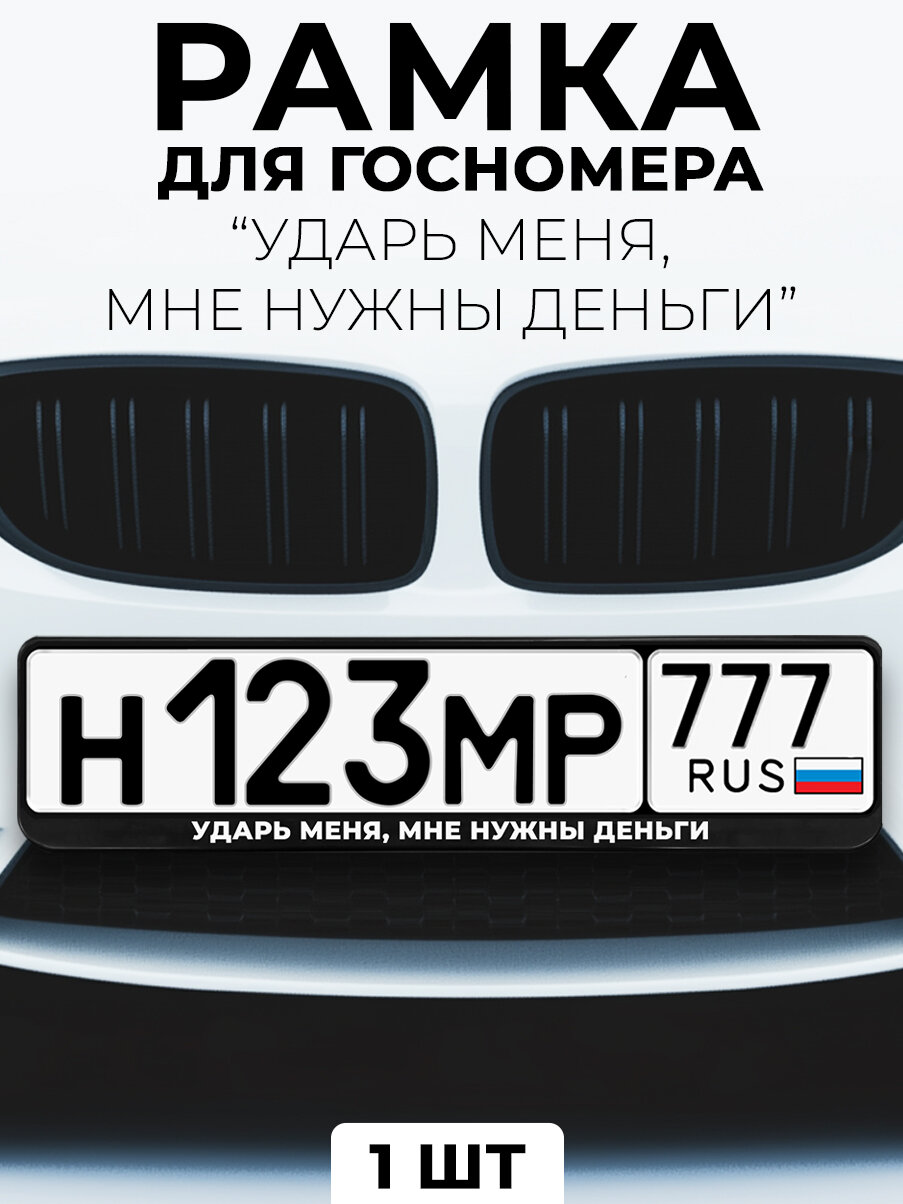 СохранитьРамка для номера автомобиля с надписью "Ударь меня, мне нужны деньги" черный интересное: