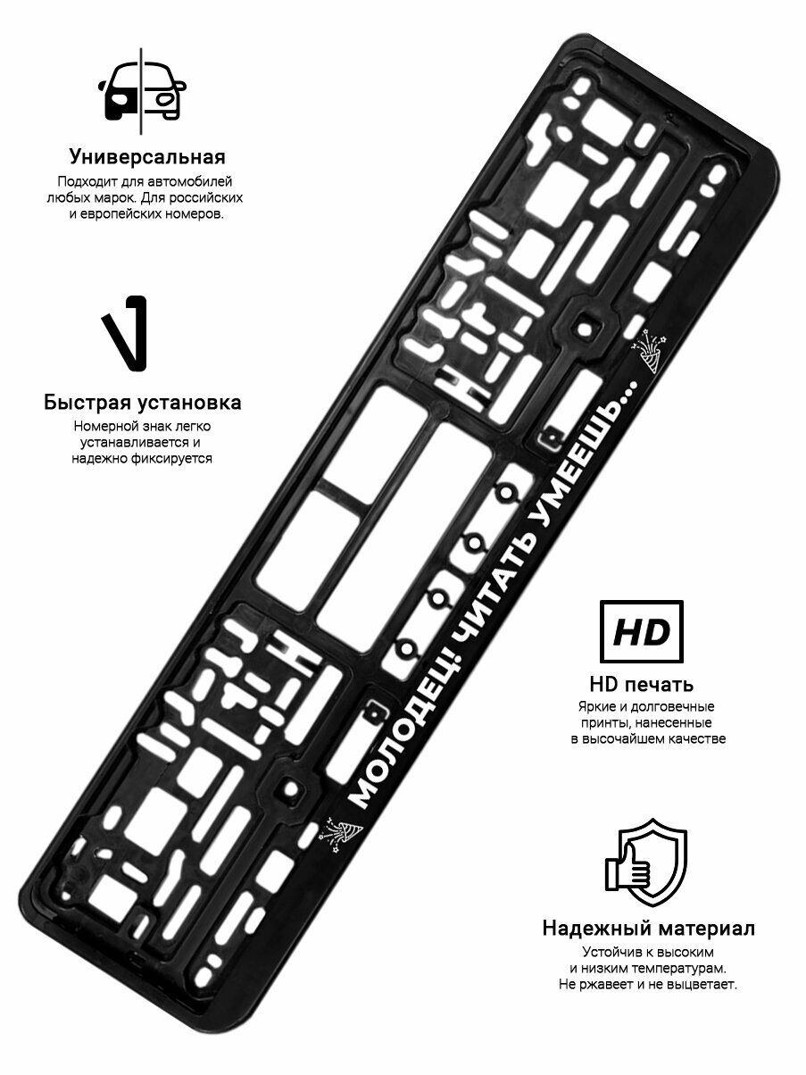 Купить Рамка для номера автомобиля с надписью "Молодец! Читать умеешь. . " черный