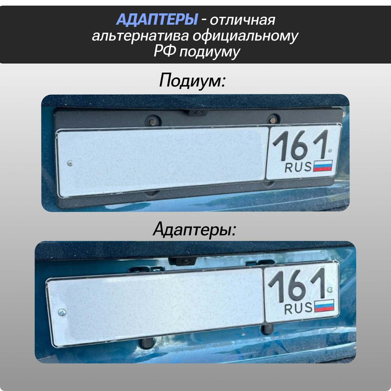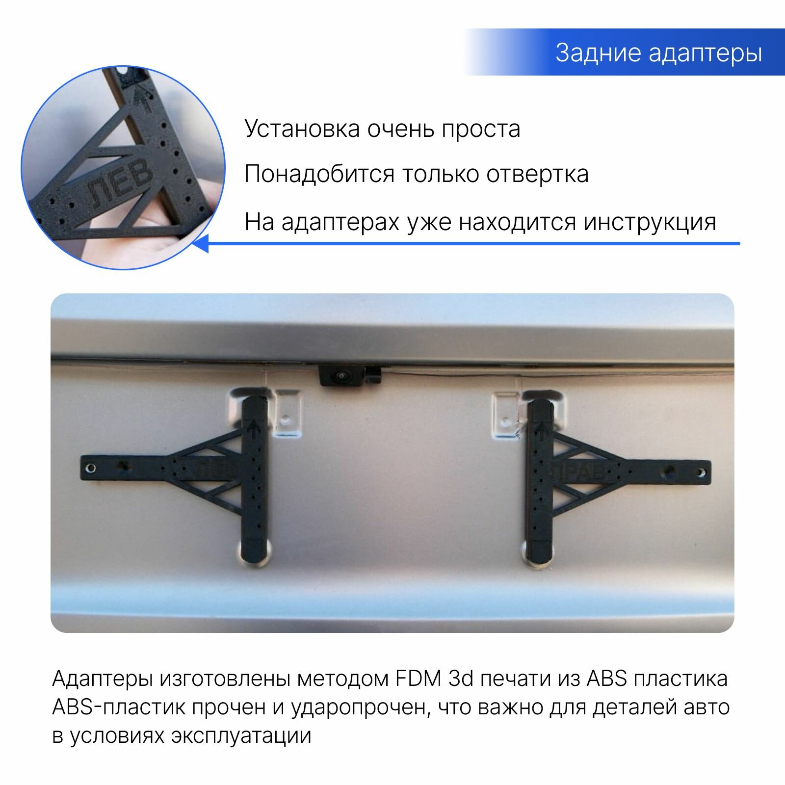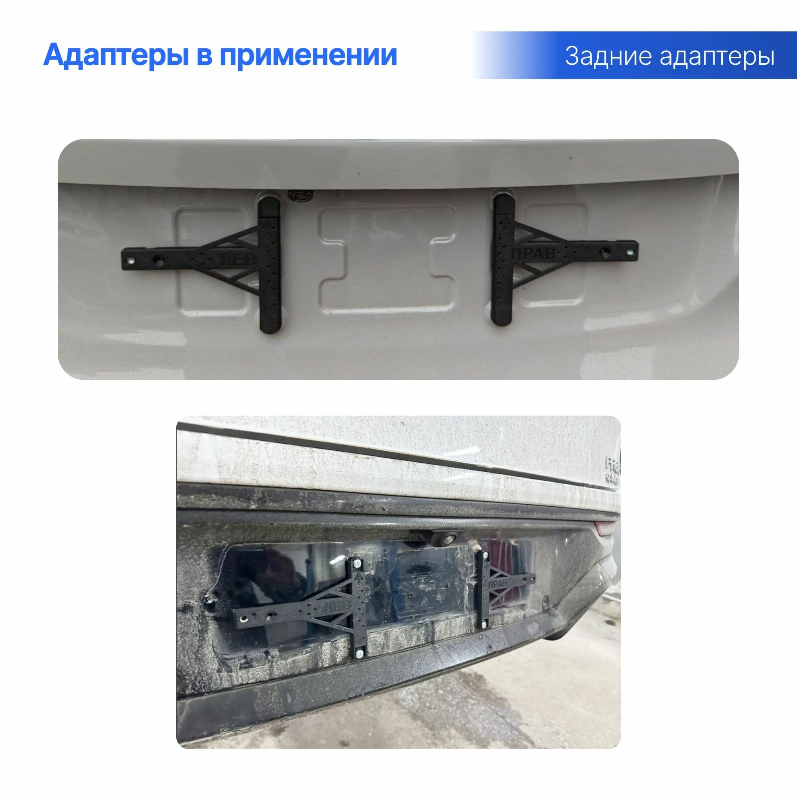 Комплект адаптеров усиленных под гос. знак китайских авто - Безрамочная установка