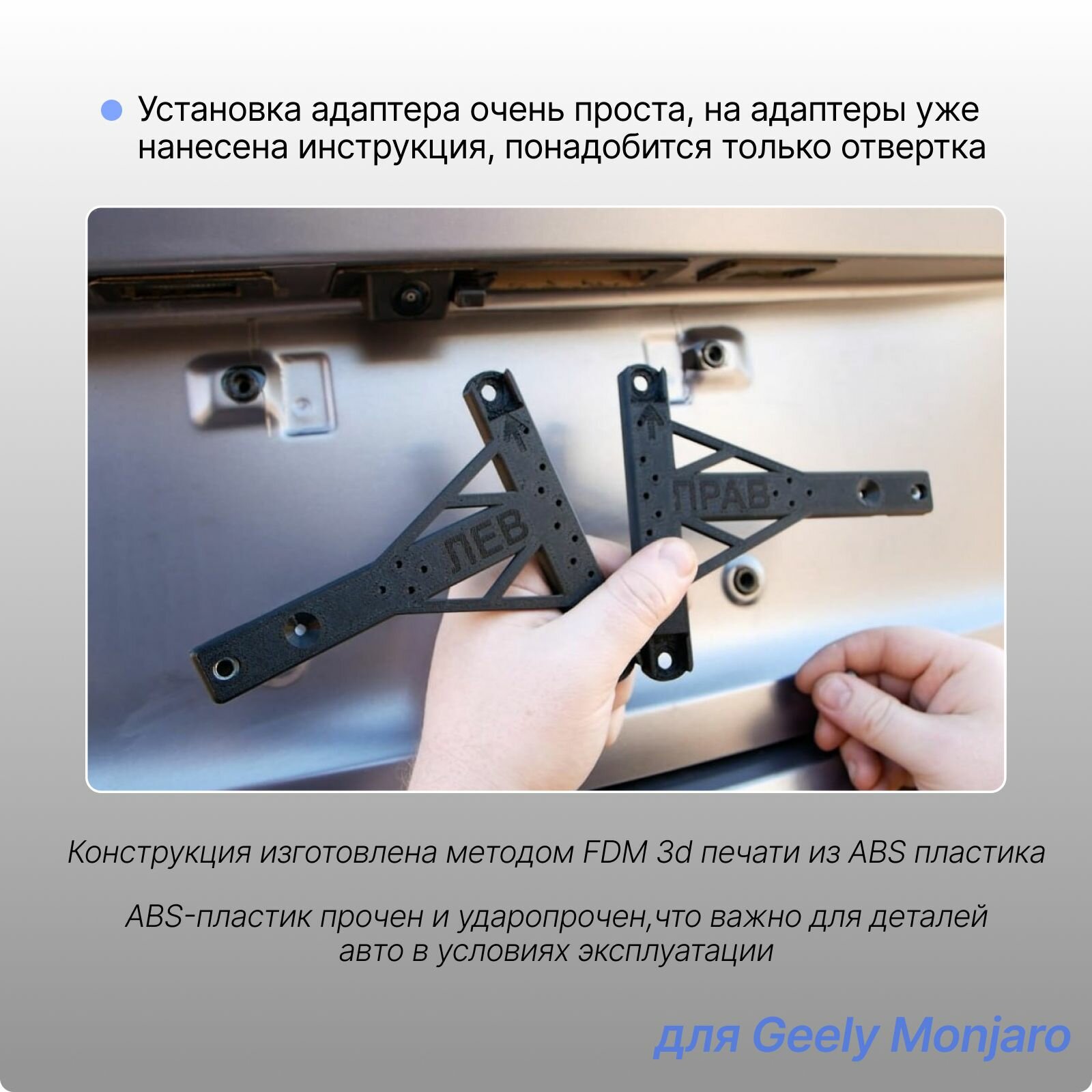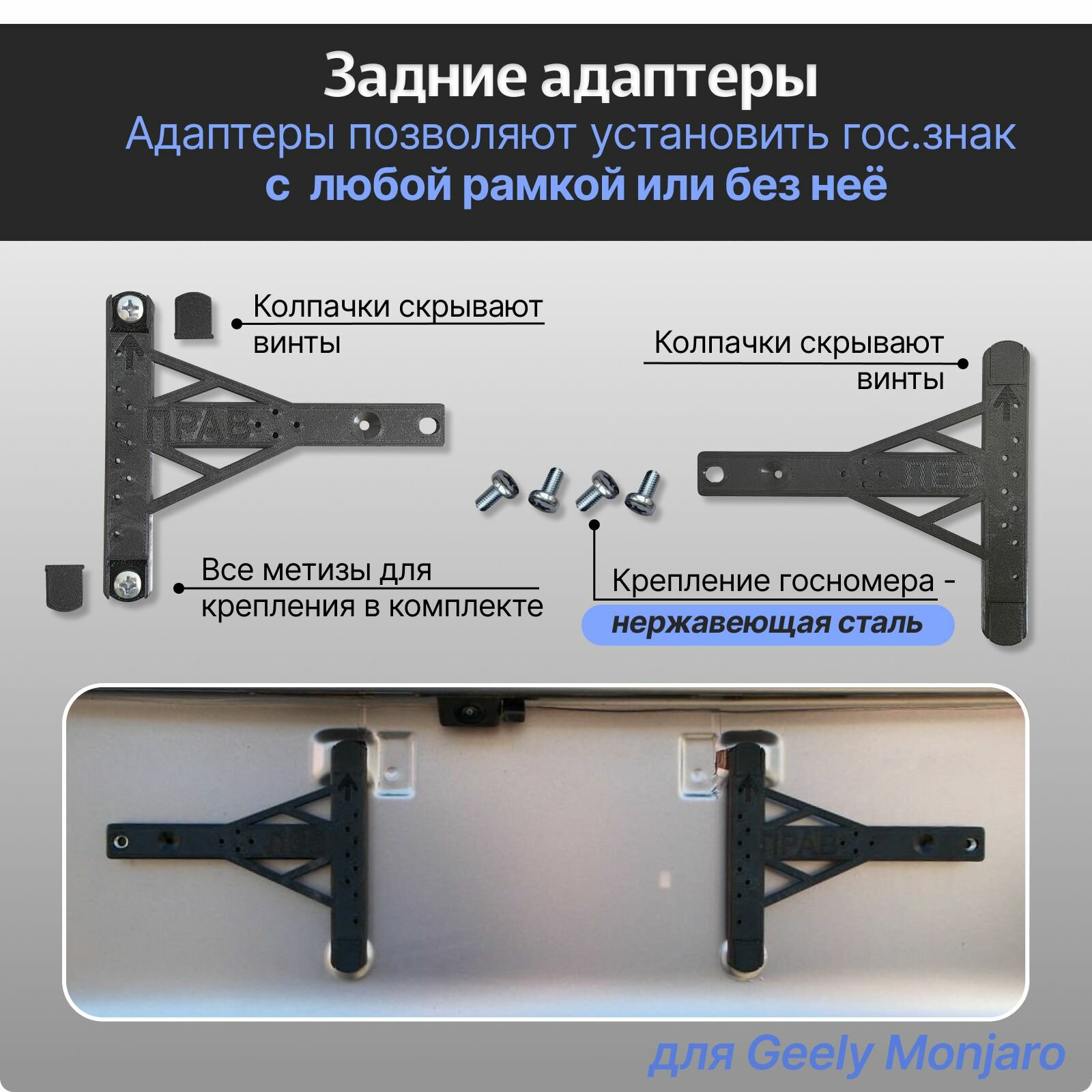 Комплект Адаптеров под номерной знак Geely Monjaro -усиленные безрамочная установка- интересное: