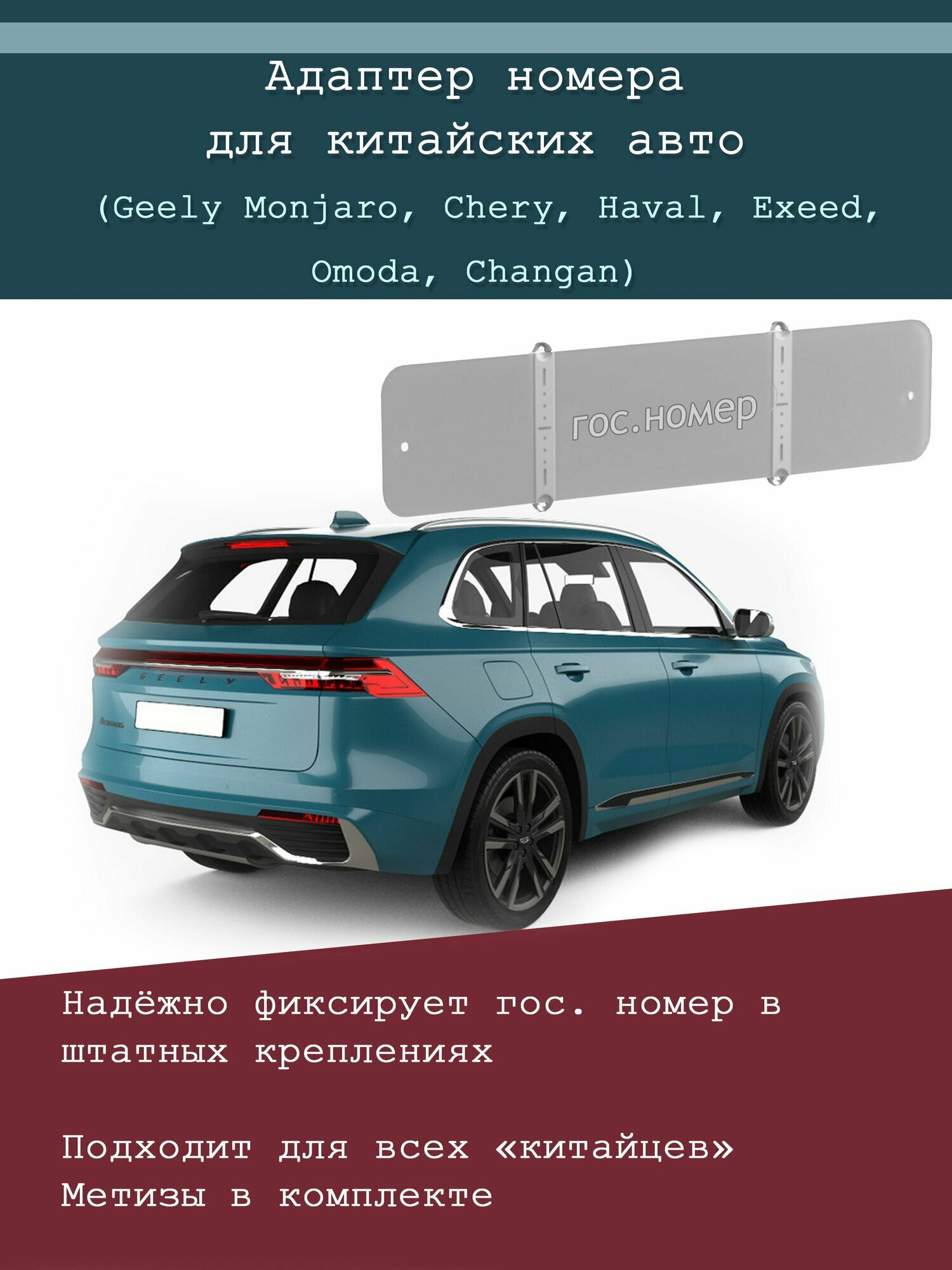 Купить Адаптер номера авто для китайских автомобилей. Переходник номерного знака Geely Changan Li Jetour Chery Haval Exeed Tank