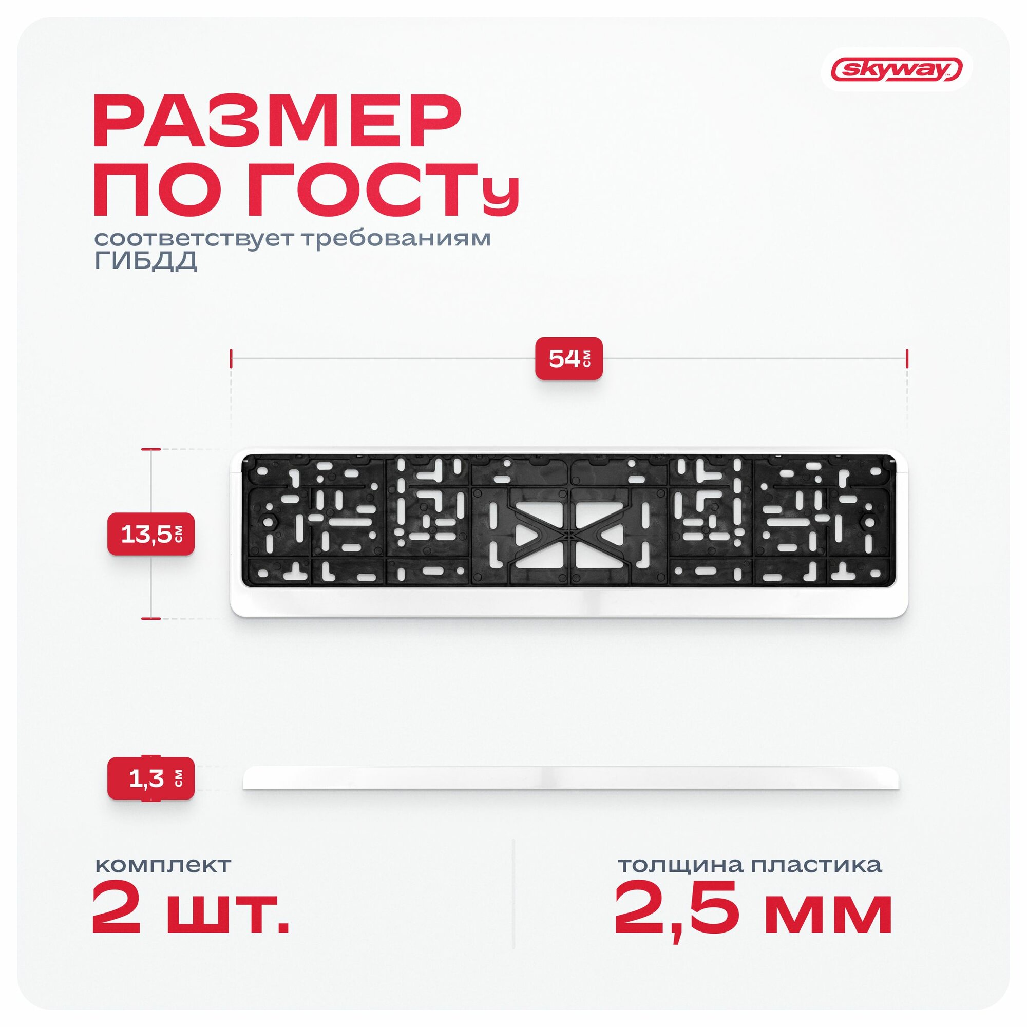 Рамка для автомобильных номеров белая (комплект 2 шт.)