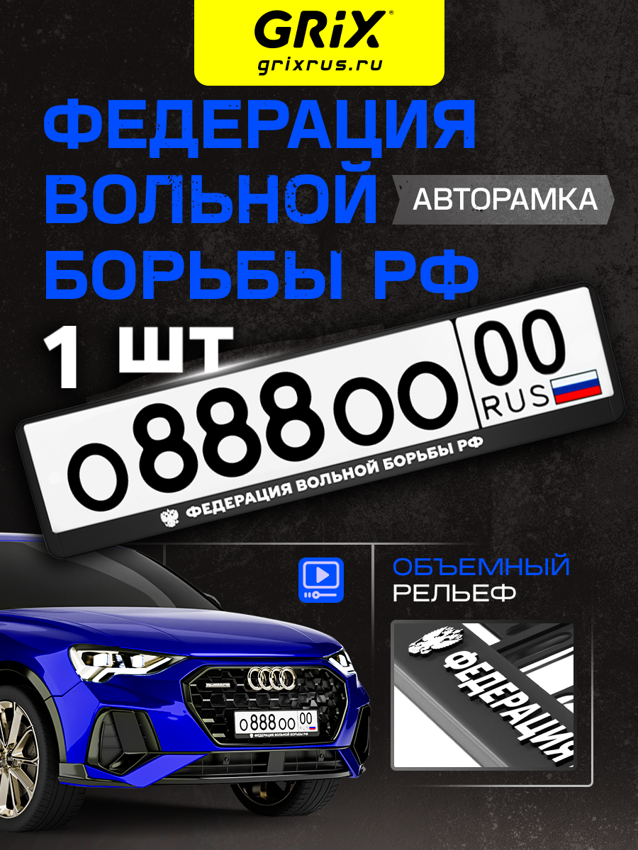 Grix Рамки автомобильные для госномеров с надписью "федерация вольной борьбы" 1 шт. интересное: