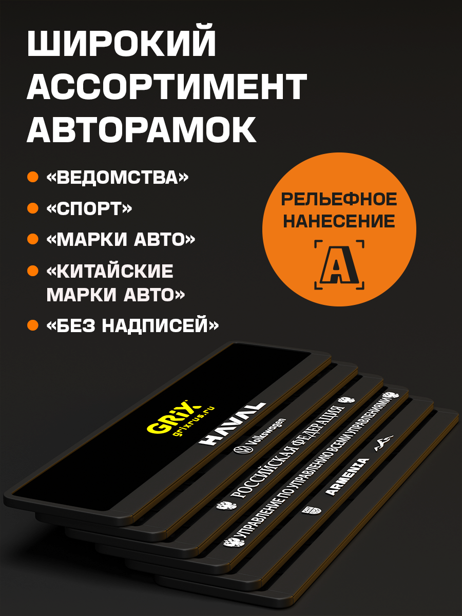 Grix Рамки автомобильные для госномеров с надписью "управление" Набор - 2 шт. интересное: