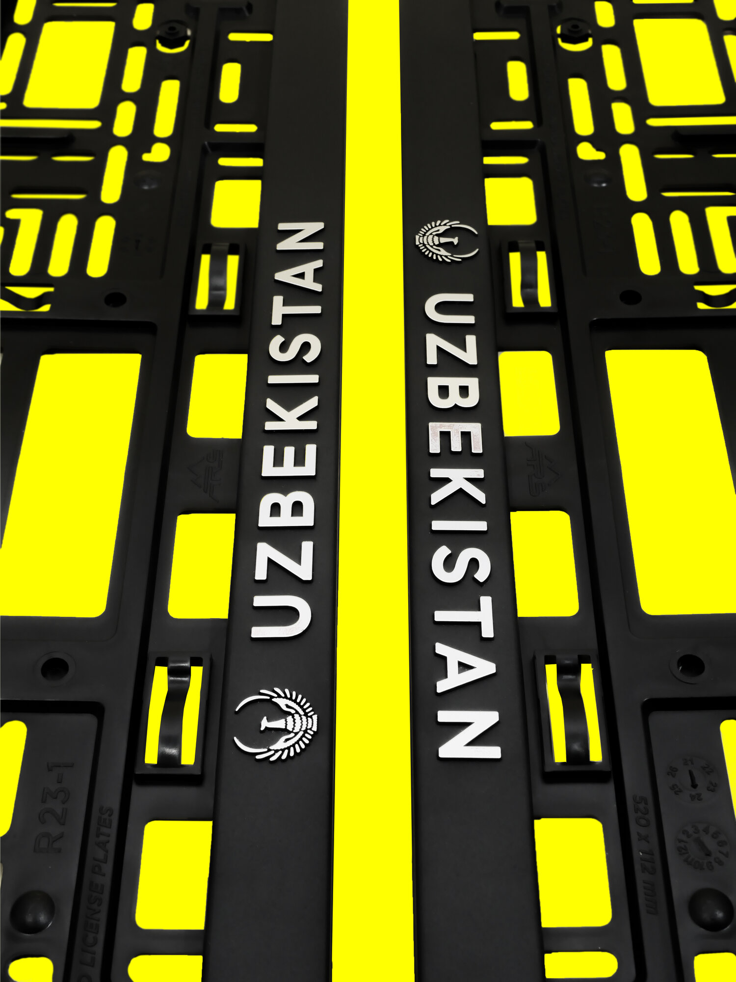 Grix Рамки автомобильные для госномеров с надписью "UZBEKISTAN" Набор - 2 шт.