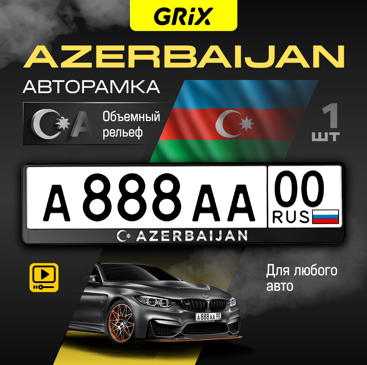 Grix Рамки автомобильные для госномеров с надписью "AZERBAIJAN" 1 шт. интересное: