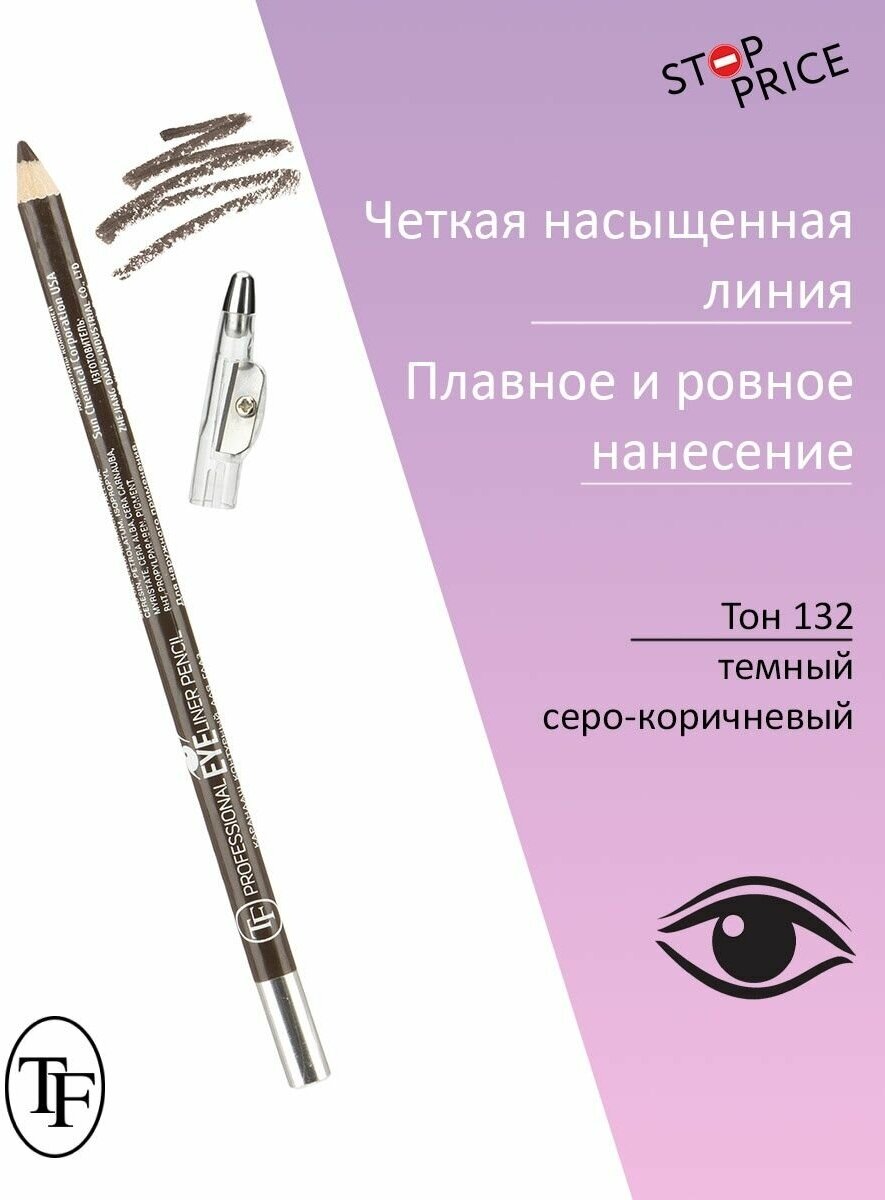 Купить TF Cosmetics Карандаш для глаз с точилкой Professional Eyeliner, оттенок 132 темный серо-коричневый