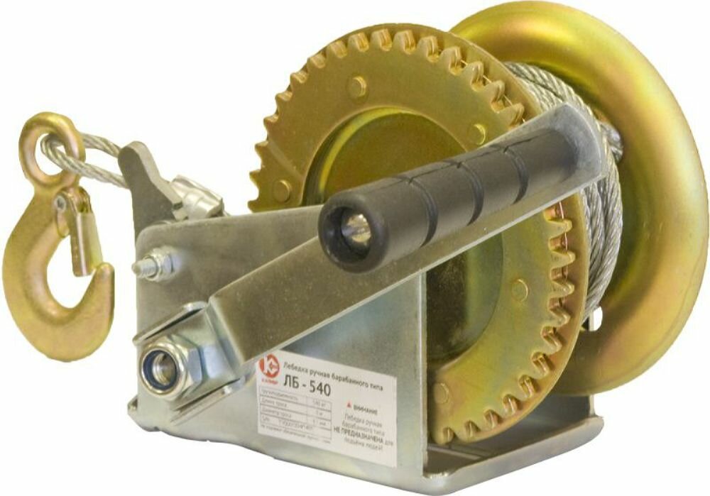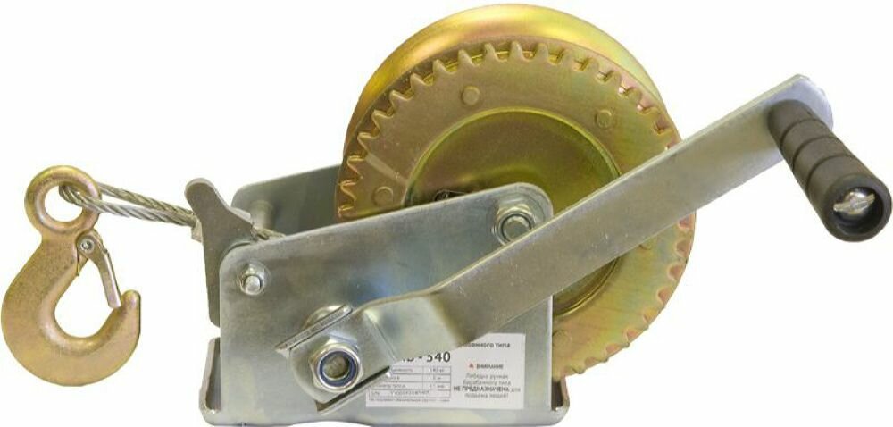 Лебедка ручная барабанная "Калибр ЛБ-540"(540кг, трос 8м/4,8мм) интересное: