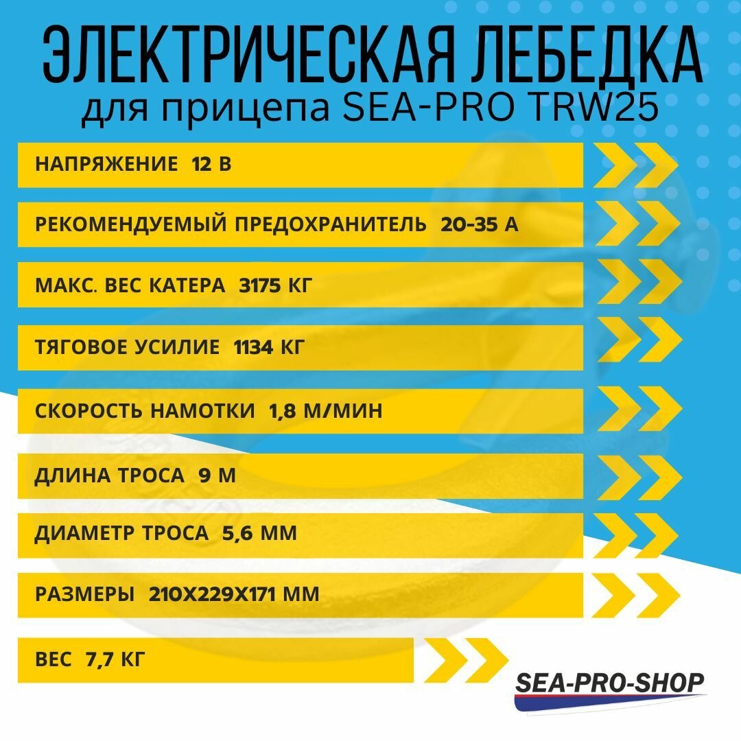 Лебедка электрическая SEA-PRO "TRW25", для прицепа, тяговая мощность 3175 кг, черная интересное: