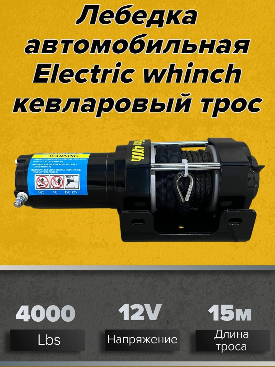 Лебедка электрическая 12V Electric Winch 4000lbs / 1814 кг кевларовый трос интересное: