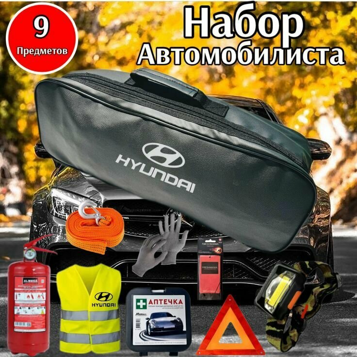 Набор автомобилиста аварийный HYUNDAI ( Хендай ) Премиум, 9 предметов интересное: