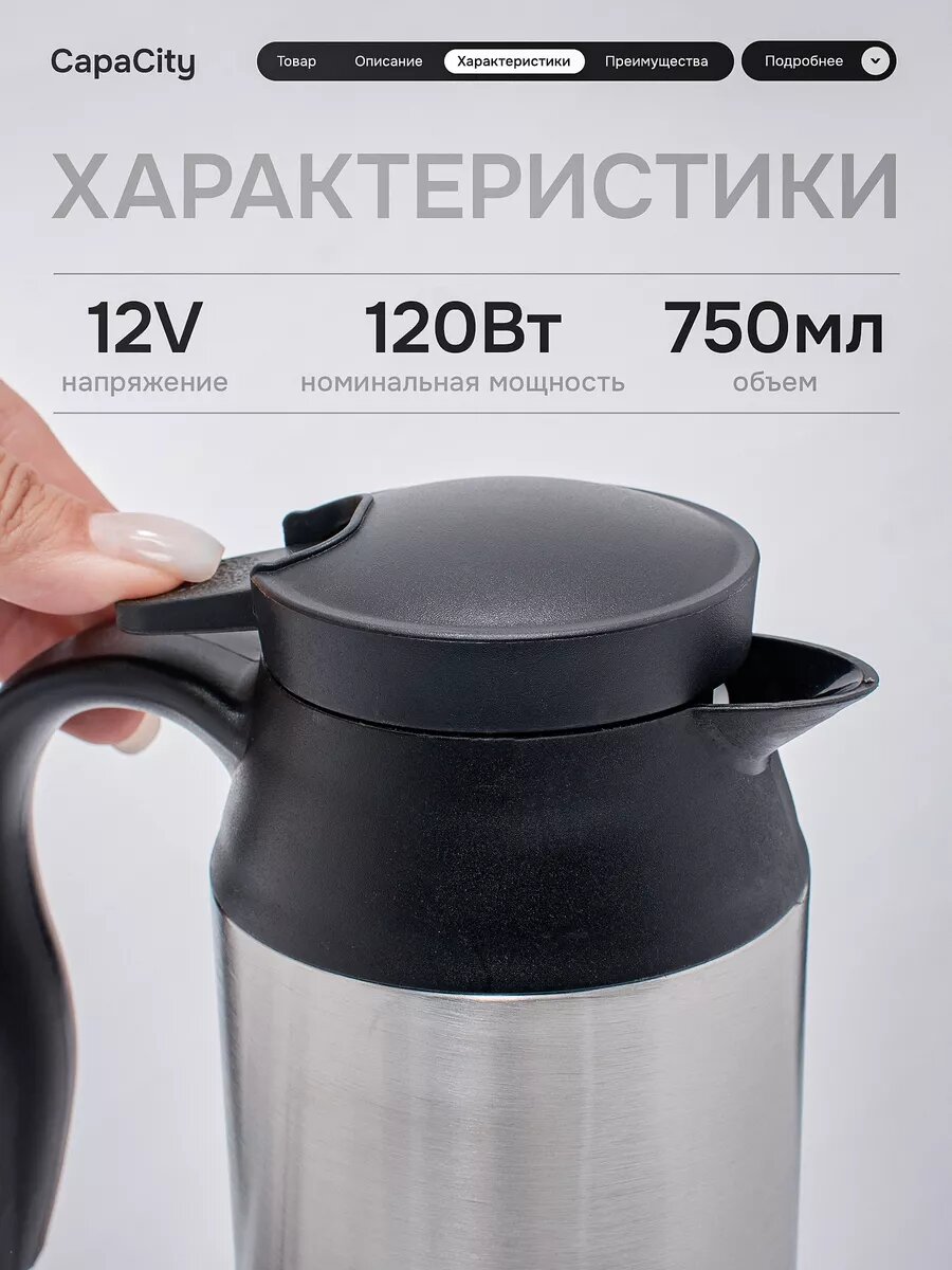 Чайник автомобильный от прикуривателя 12V, 750 мл интересное: