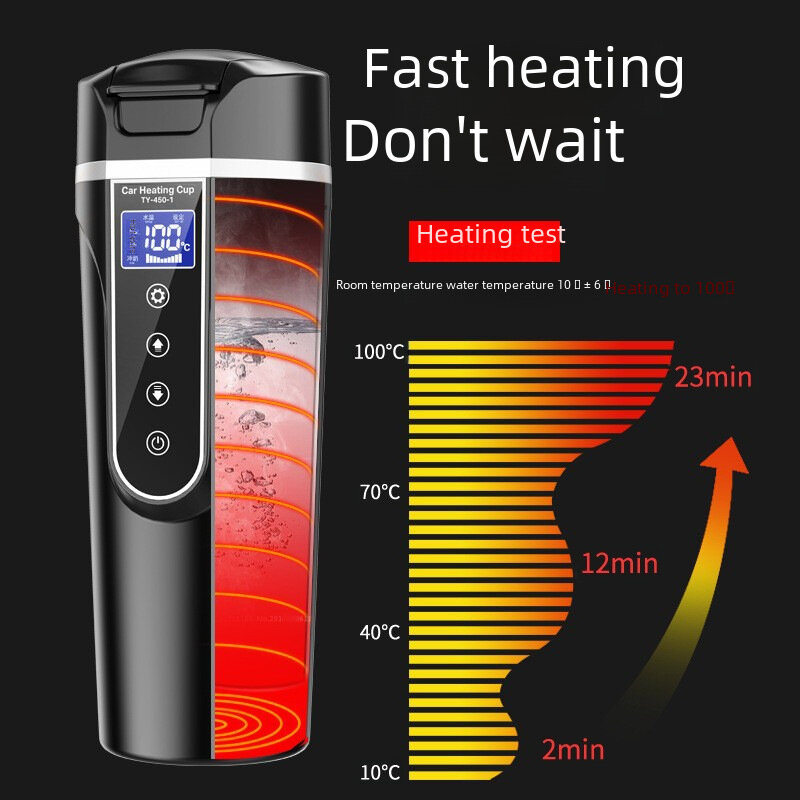 Купить Автомобильная чашка, нержавеющая сталь, 24В, с цифровым дисплеем, 500мл, черная