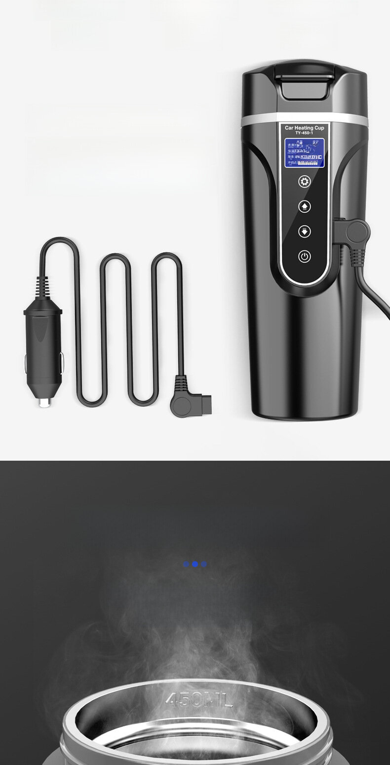 Электронагревательная чашка "Умный автомобиль", 24В, 500мл, цифровая, нержавеющая сталь
