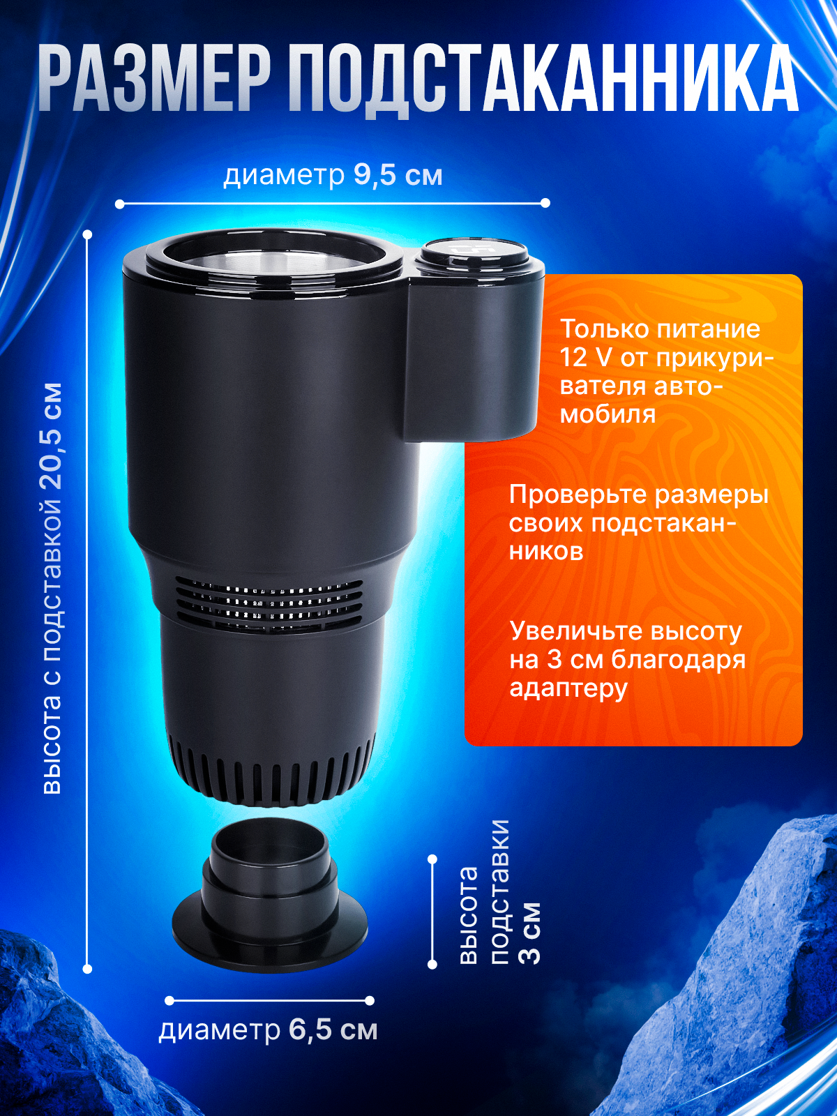Автомобильный термо-подстаканник с охлаждением и нагревом (0-60°C) + Умный термометр + Алюминиевый корпус интересное: