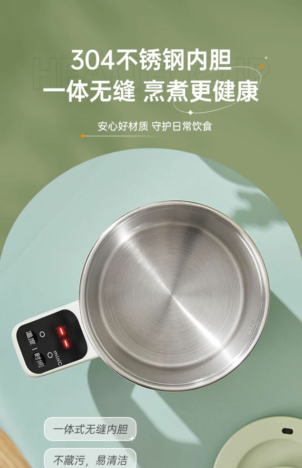 Чашка для электронагрева "Зеленый Базилик", 800мл, с термостатом
