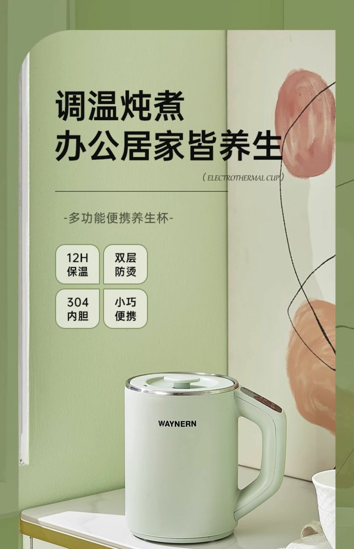 Чашка для электронагрева "Зеленый Базилик", 800мл, с термостатом