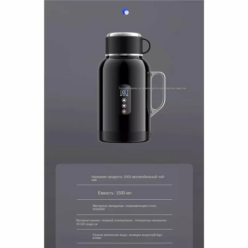 Автомобильный чайник, 1,5л, 100Вт, 12В/24В, нержавеющая сталь, черный интересное: