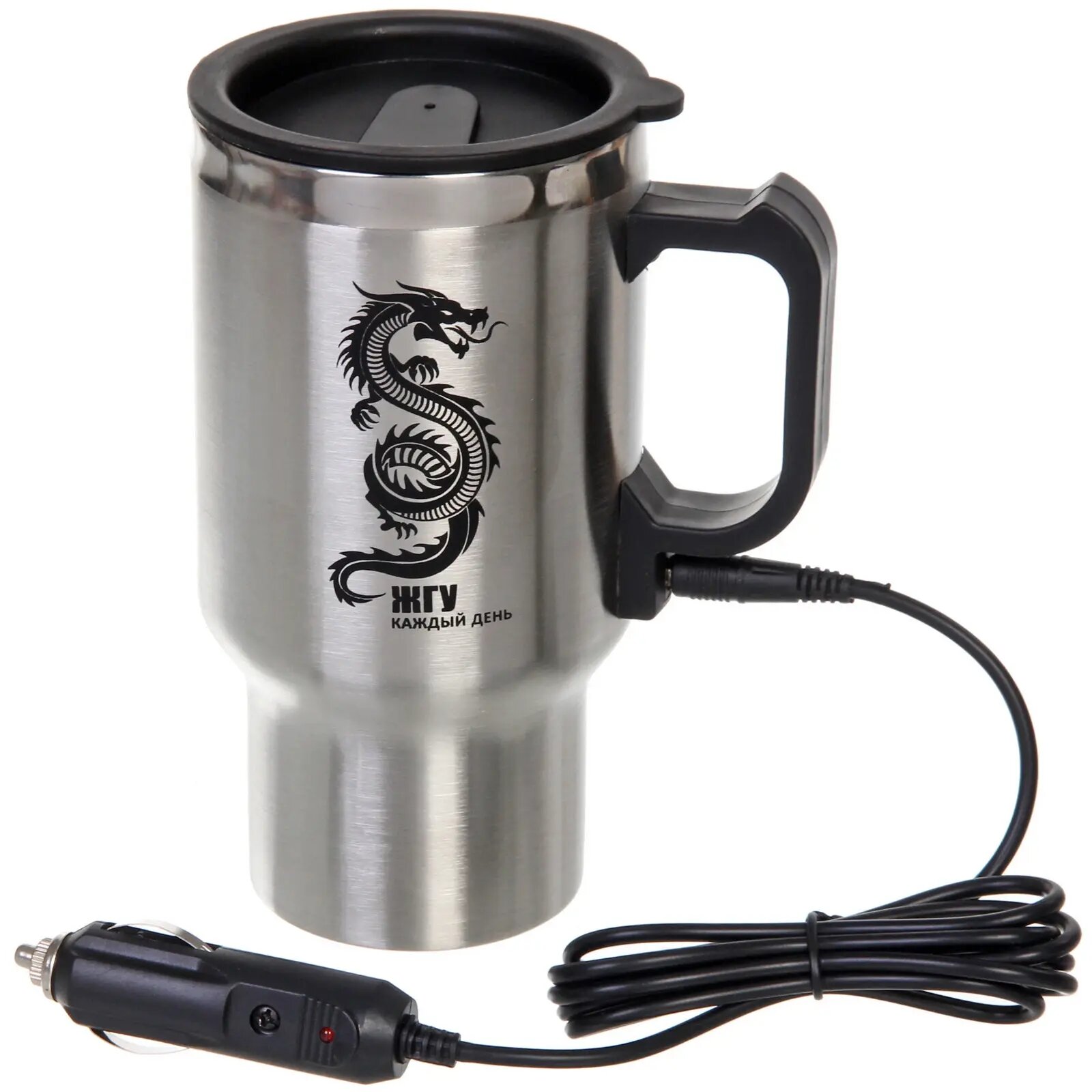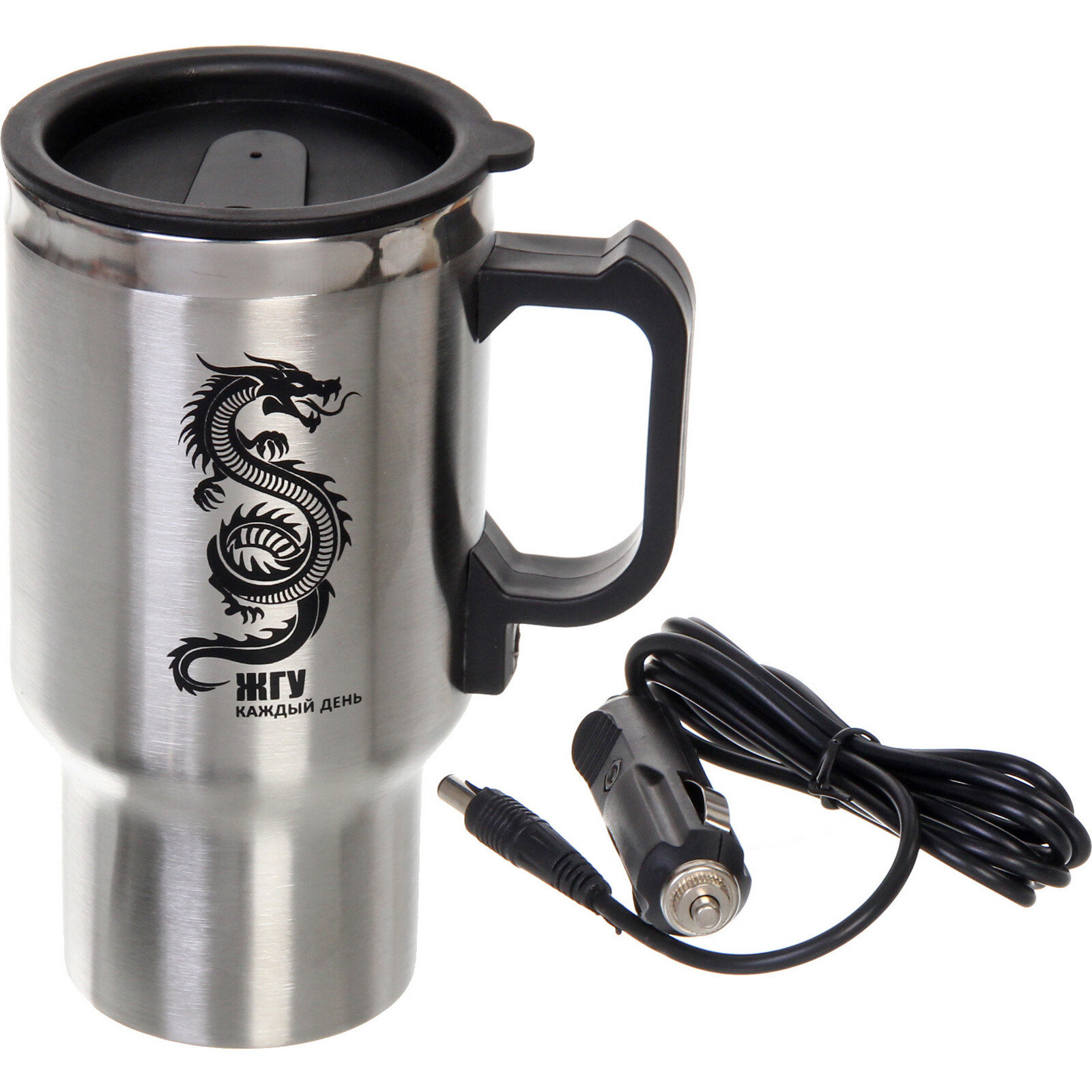 Термокружка 450мл, с подогревом от прикуривателя «Жгу каждый день» Серп и молот интересное: