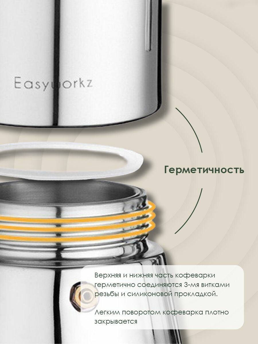 Гейзерная кофеварка EASYWORKZ для индукционной и газовой плиты на 6 чашек интересное: