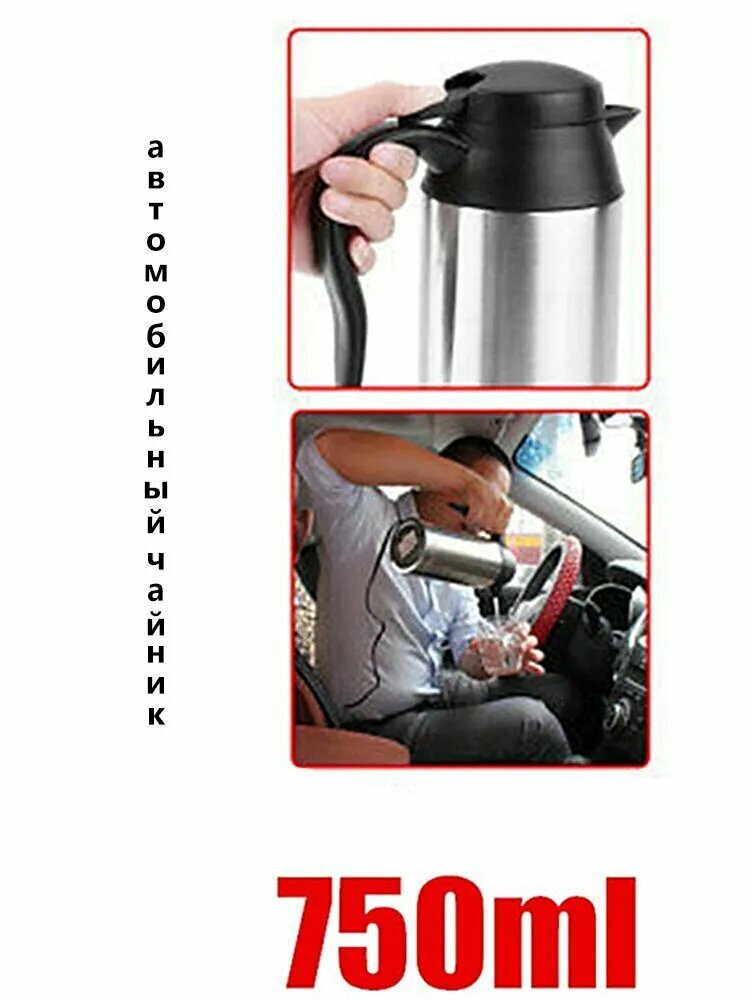 Автомобильный чайник, мощность 240Вт, объём 0.75л, серебристый интересное: