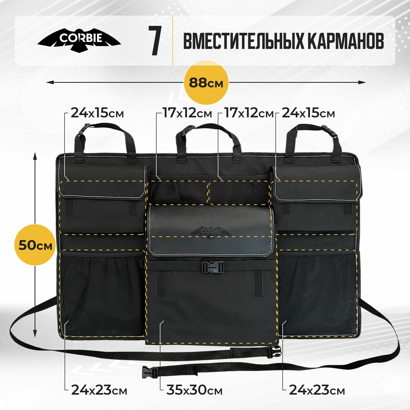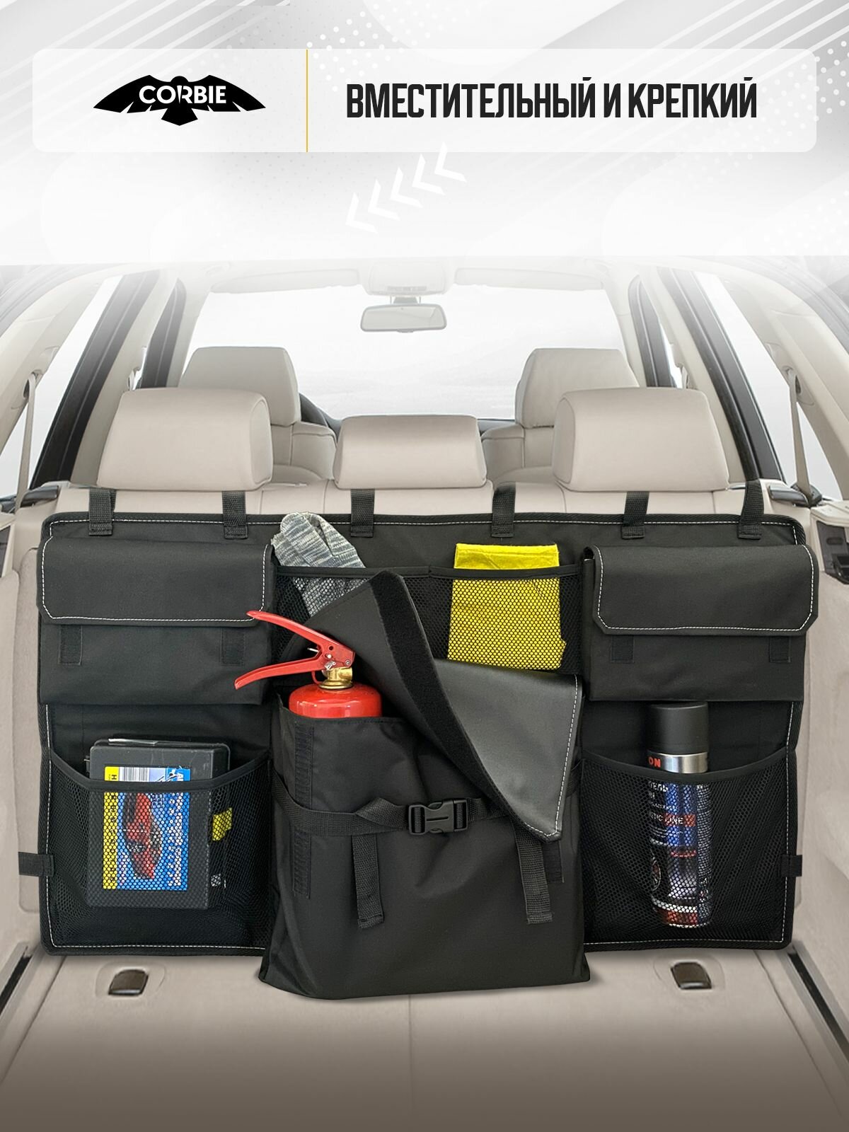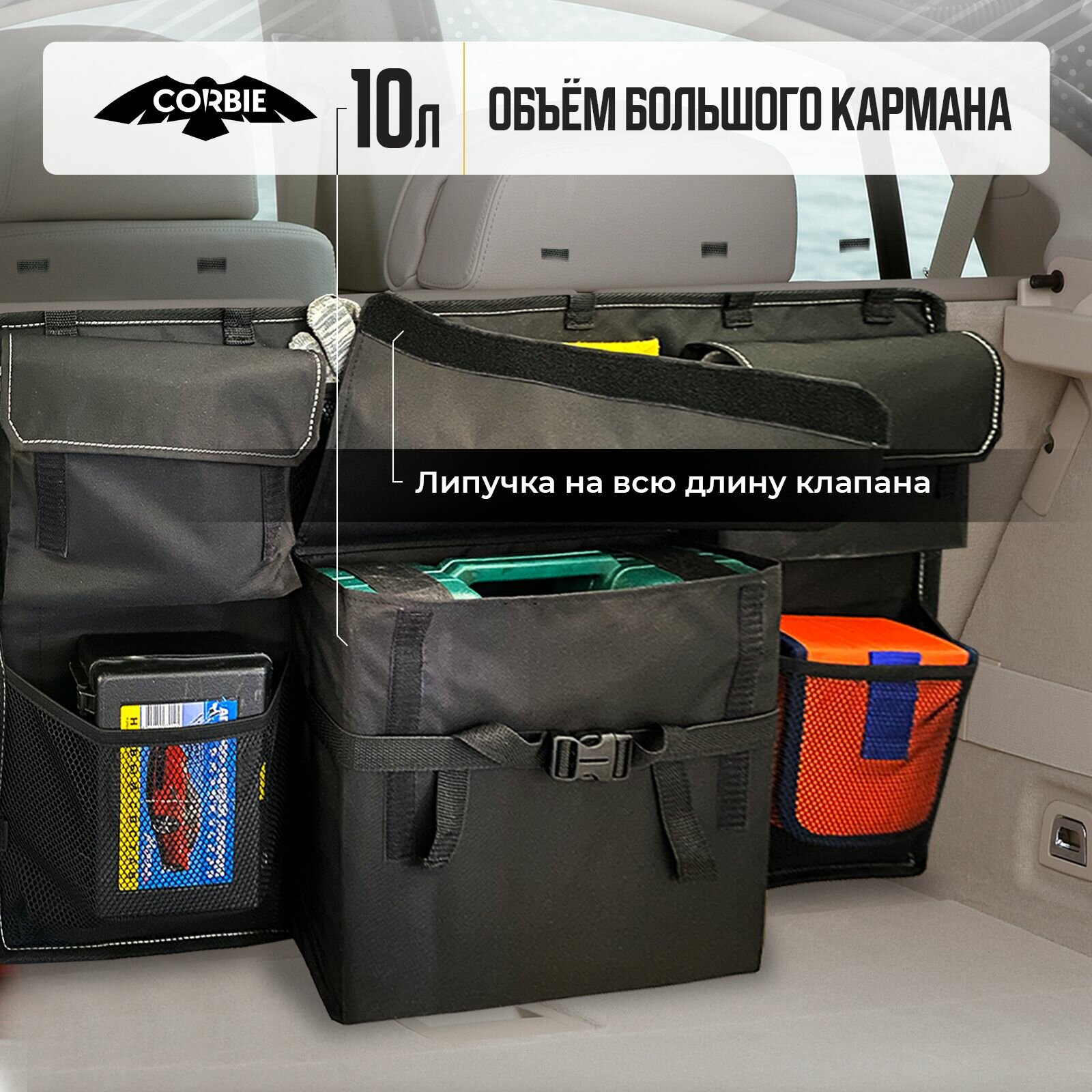 Органайзер в багажник BASKET L (TM CORBIE) подвесной на спинку заднего сиденья интересное: