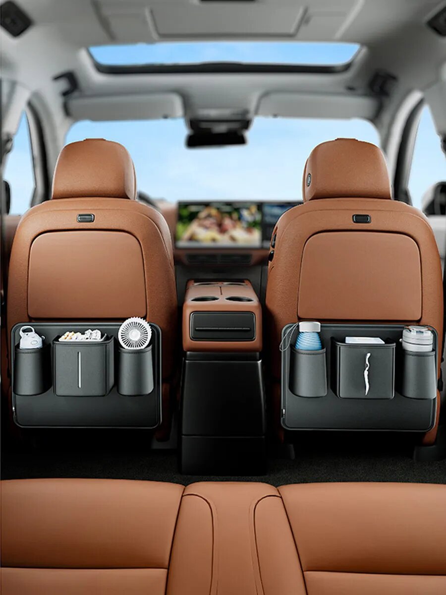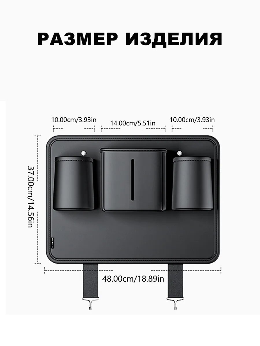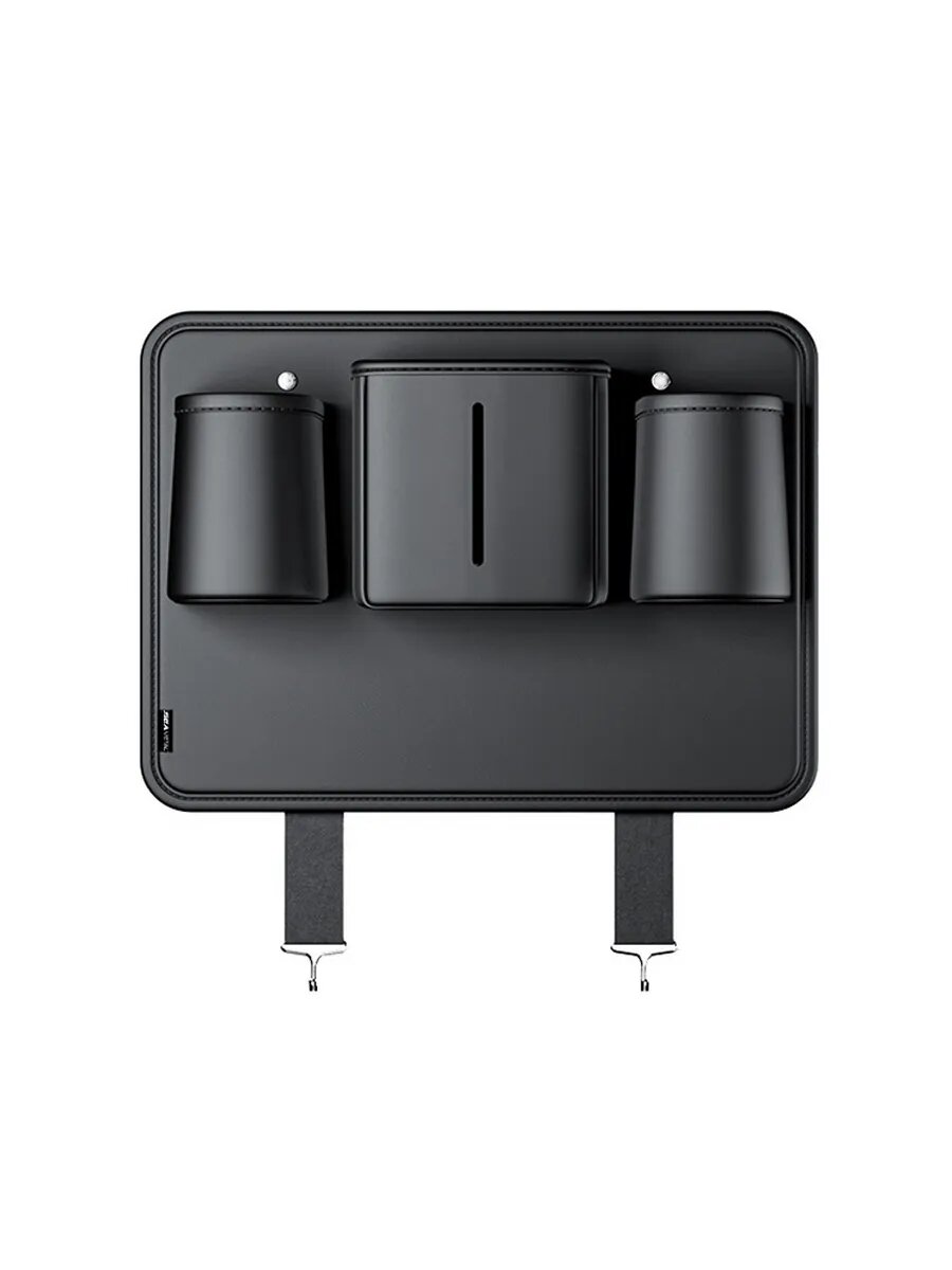 Органайзер для автокресла SEAMETAL - кожаный, с держателем для бутылки и коробкой для салфеток, 48х37 см, черный интересное:
