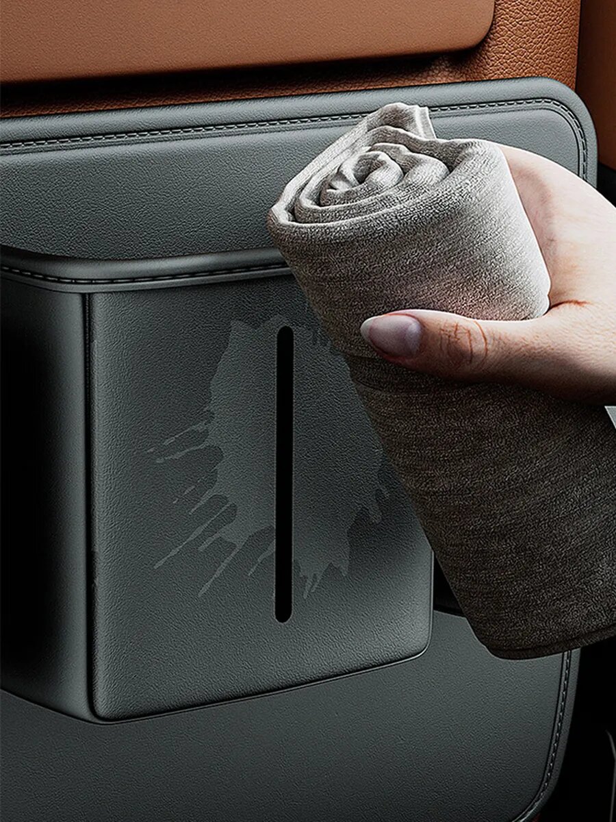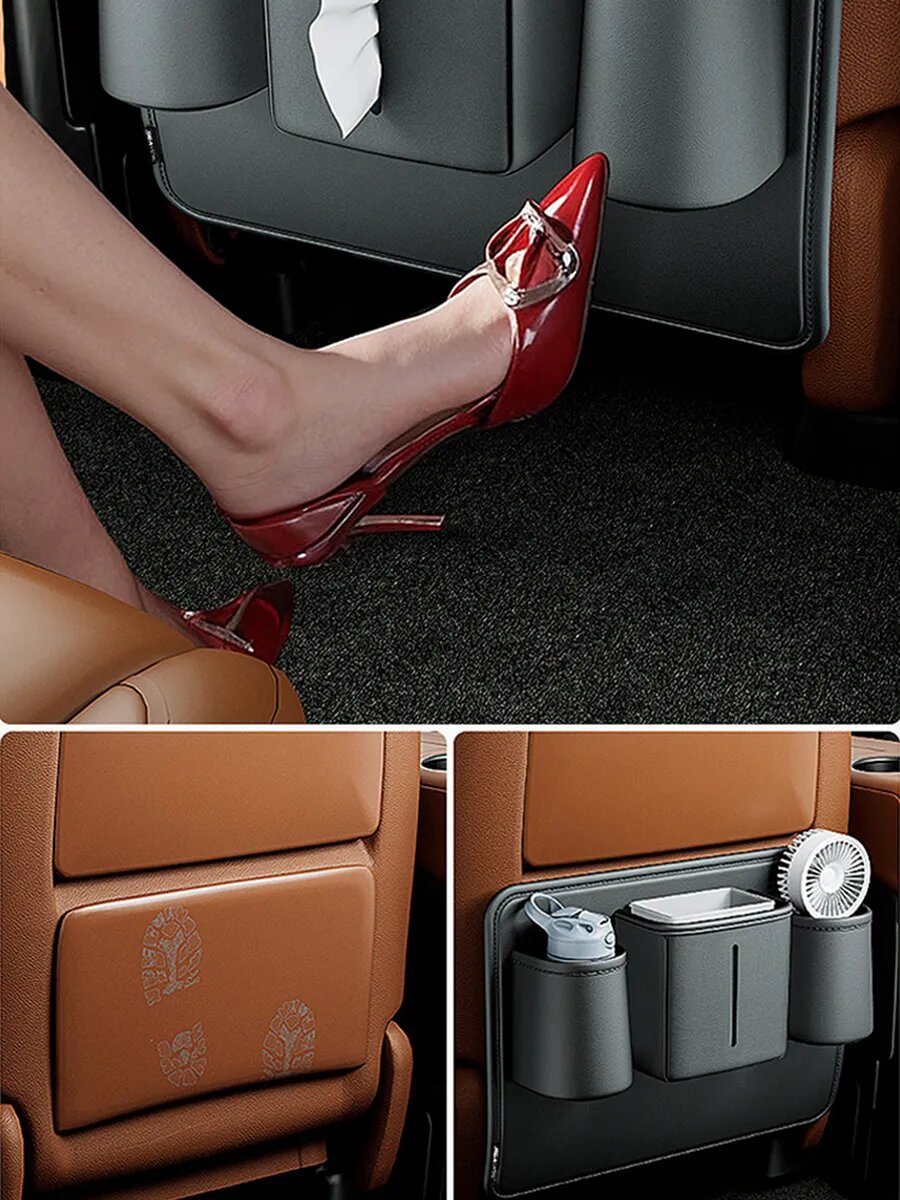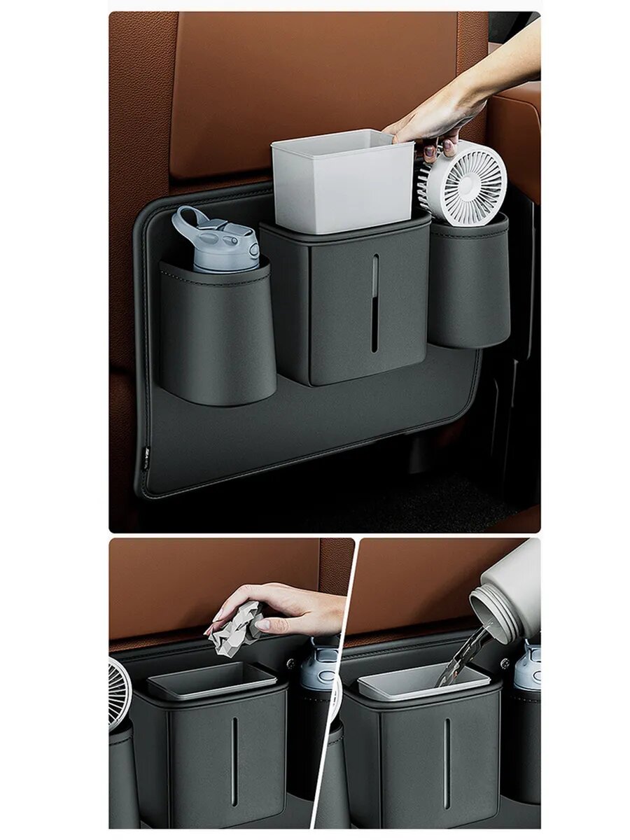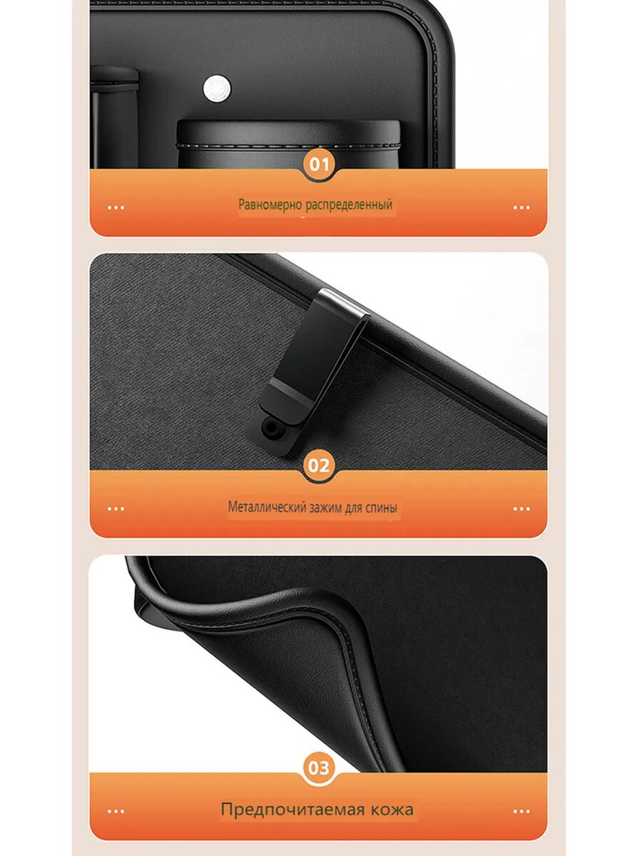 Органайзер для автокресла SEAMETAL - кожаный, с держателем для бутылки и коробкой для салфеток, 48х37 см, черный интересное: