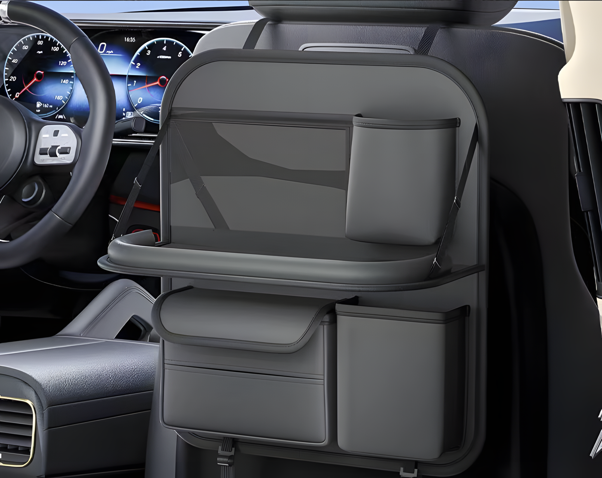 Органайзер Besco на спинку автокресла, подвесной, с откидным столиком, 40x37 см, серый