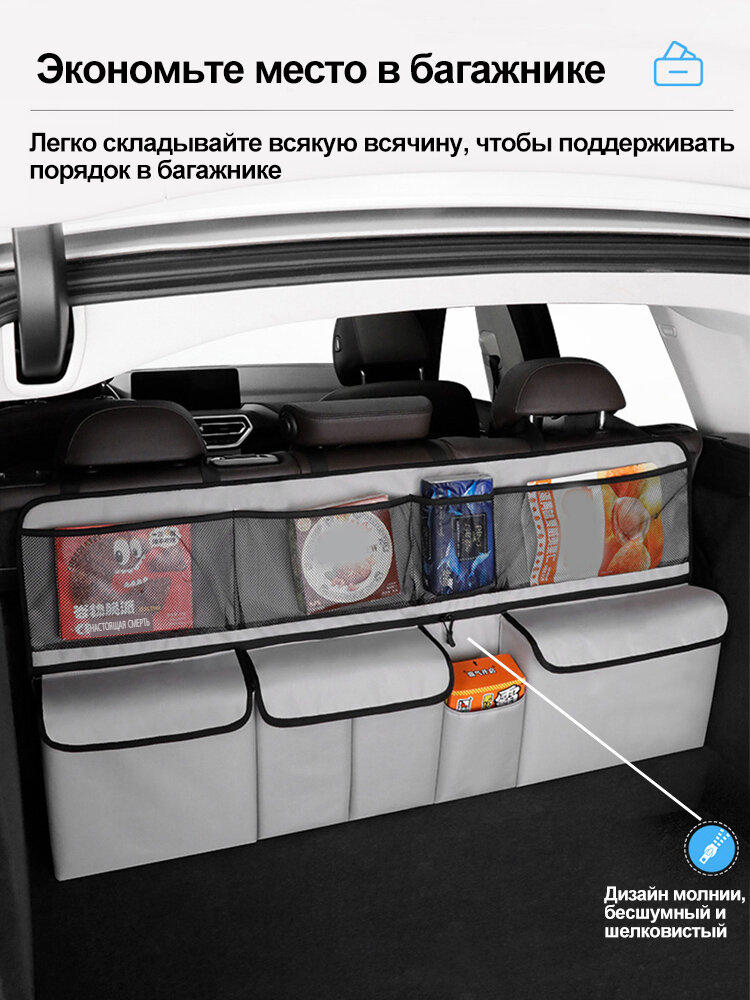 Органайзер в багажник SEAMETAL 10 отделов, на спинку заднего сиденья, Серый 105 x 51 cm интересное: