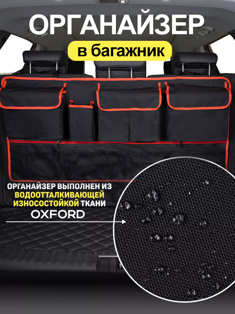 Купить Органайзер в багажник SEAMETAL 10 отделов, на спинку заднего сиденья, Оксфордская ткань, чёрно-красный,107 x 52 cm