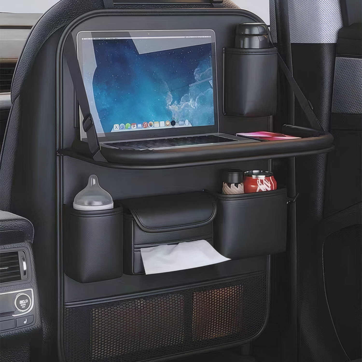 Органайзер в салон, полка для ноутбука, отделение для салфеток, 5 отделений, черная
