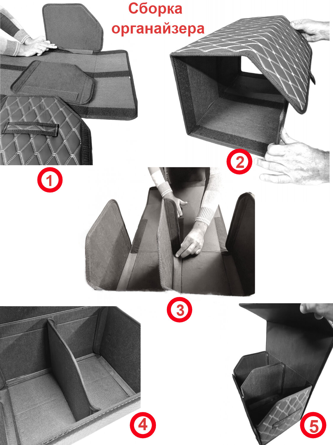 Сумка-органайзер Autozoom в багажник /сумка-саквояж универсальная для автомобиля / кофр в багажник авто/. Черная экокожа, строчка красный ромб