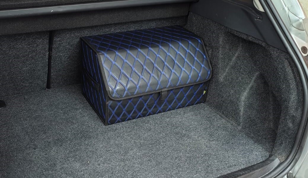 Саквояж в багажник автомобильный эко кожа черная синий ромб, объем 45 л