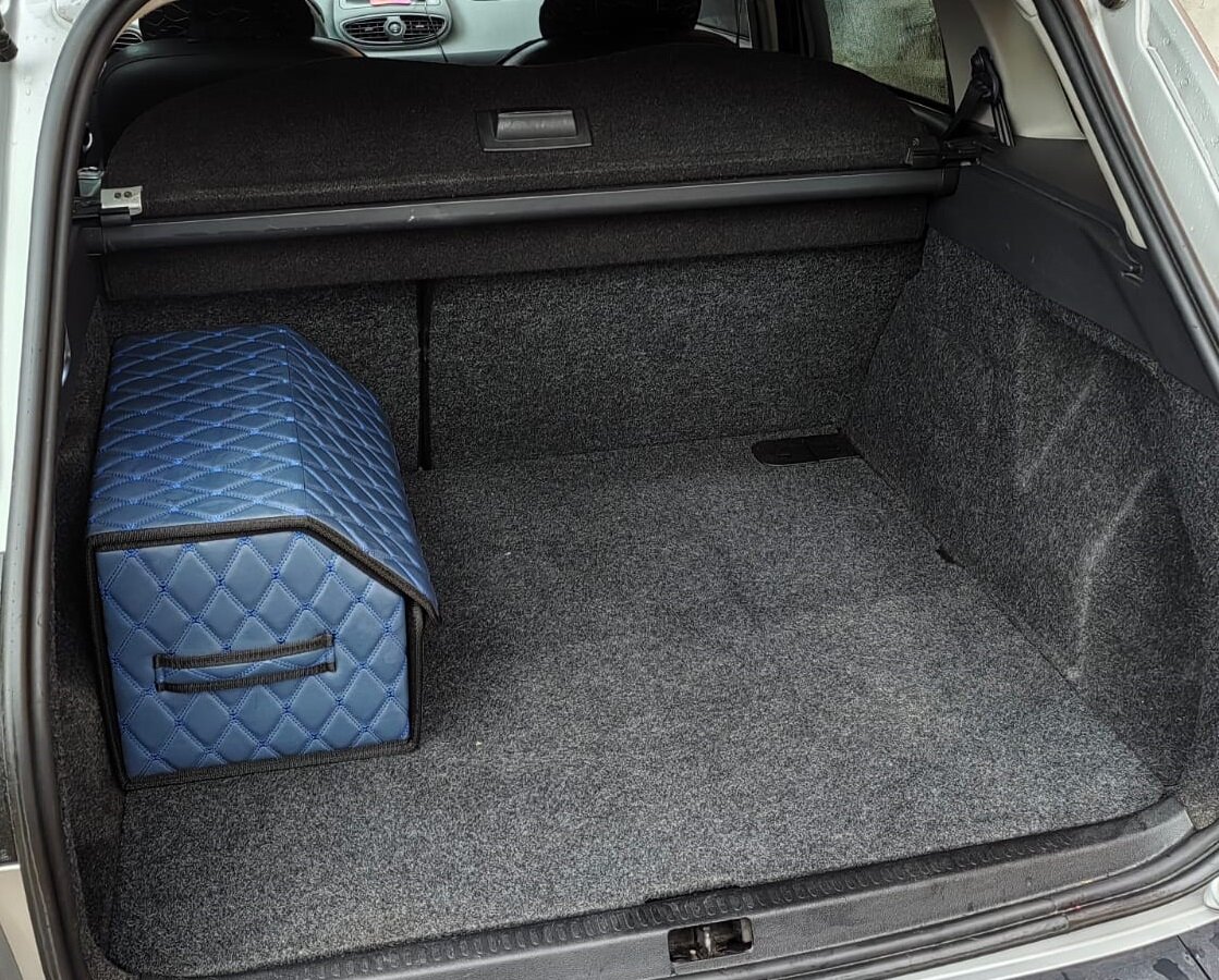 СохранитьСумка-органайзер Autozoom в багажник /сумка-саквояж универсальная для автомобиля / кофр в багажник авто/. Синяя экокожа, строчка синий ромб интересное: