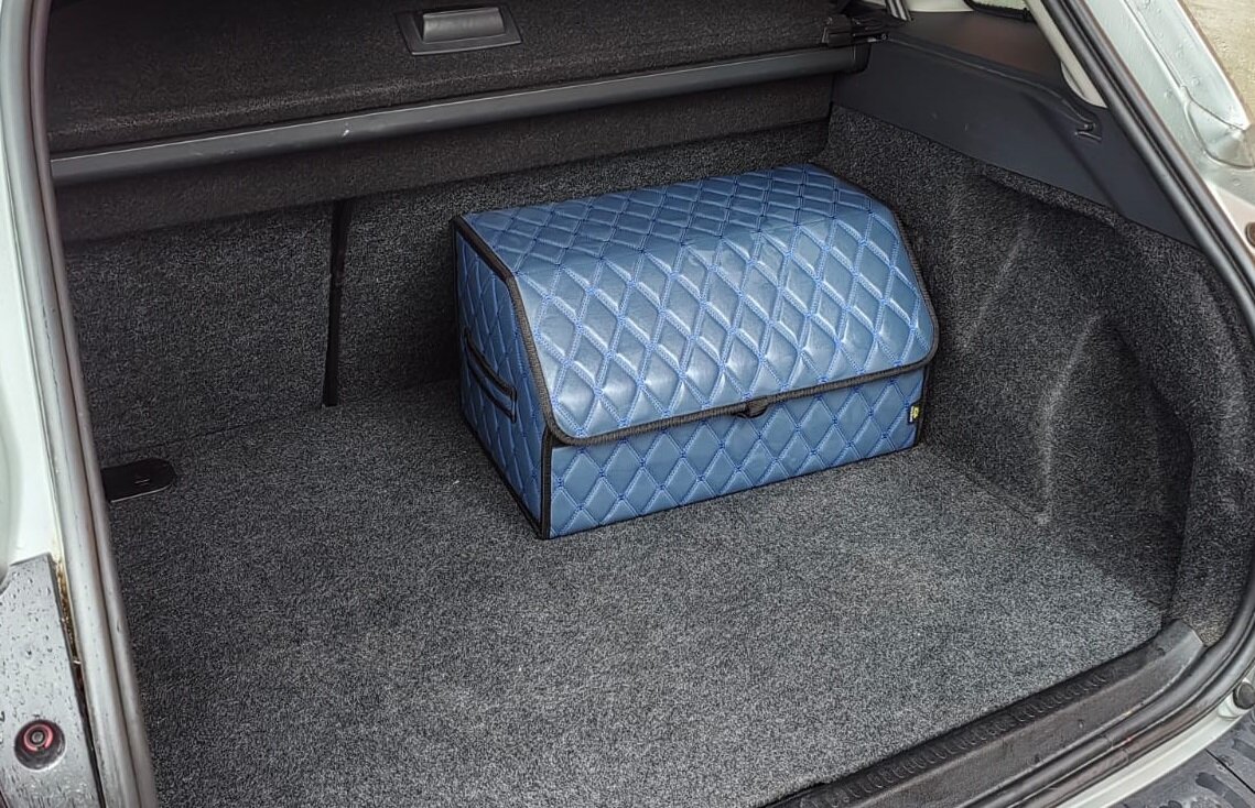 Саквояж в багажник автомобильный эко кожа черная синий ромб, объем 45 л