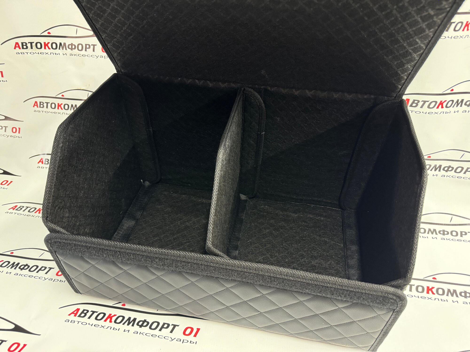 Органайзер в багажник с логотипом Kia (Киа) 50 см. Кожзам, ромб, черный.