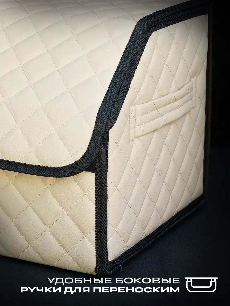 СохранитьОрганайзер ЧехлоFF, для багажника автомобиля, ЭКО кожа, влагостойкий, с ручками, бежевый с черным кантом, 30х30 интересное: